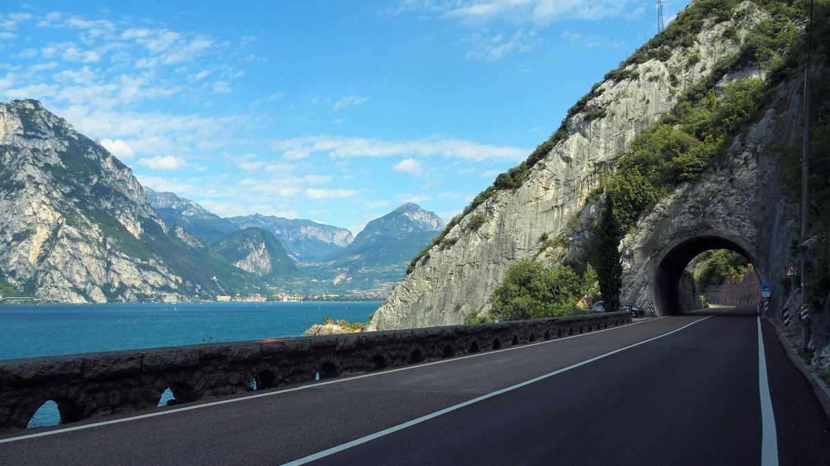 Ich hatte beschlossen, trotz des dort herrschenden mörderischen Verkehrs die Straße entlang des Ostufers zu nehmen. Denn die einzige Alternative wäre eine lange parallele Straße hinter den Bergen durch das Etsch-Tal ohne Blick auf den malerischen See gewesen.