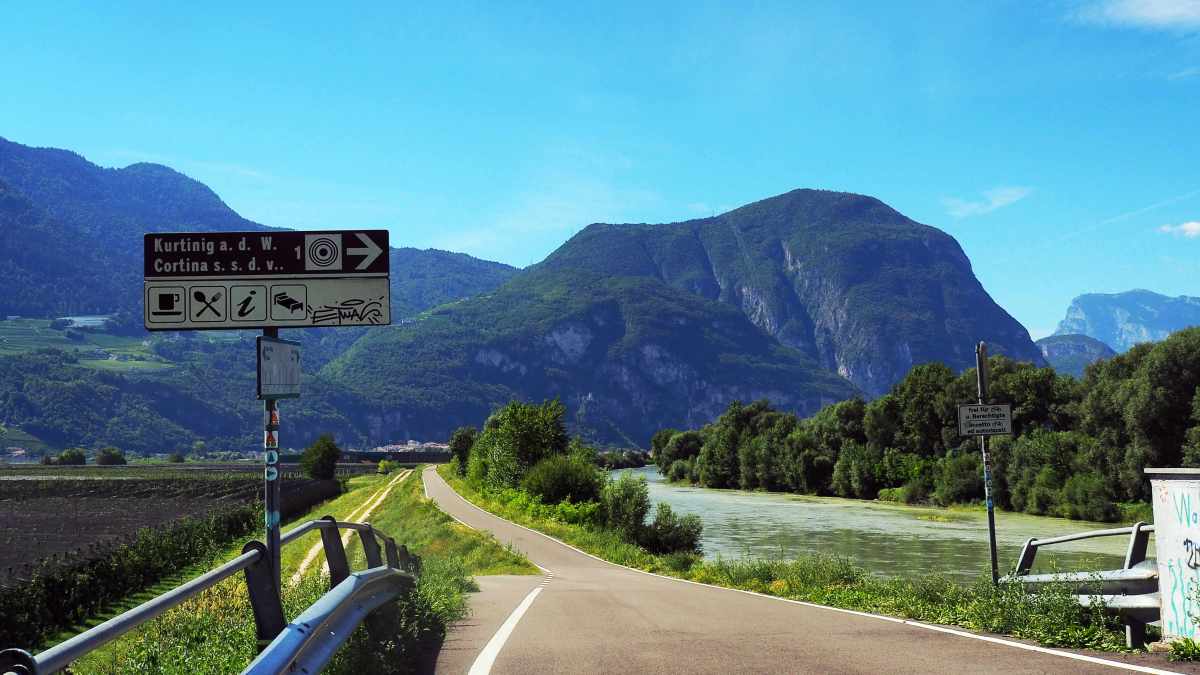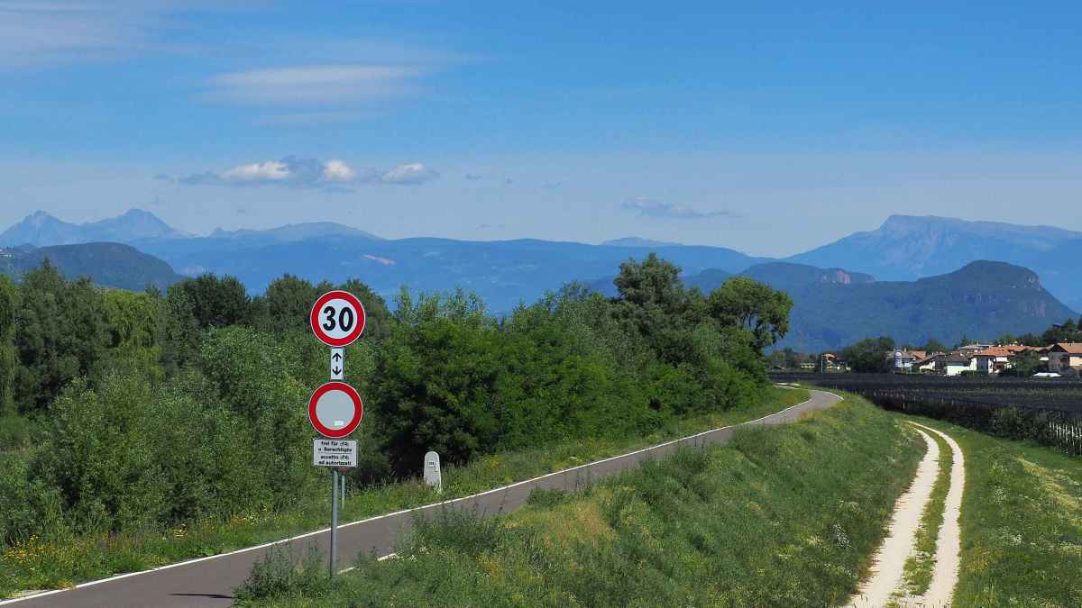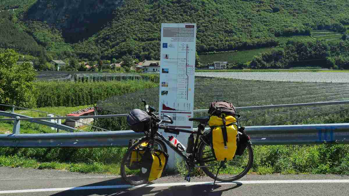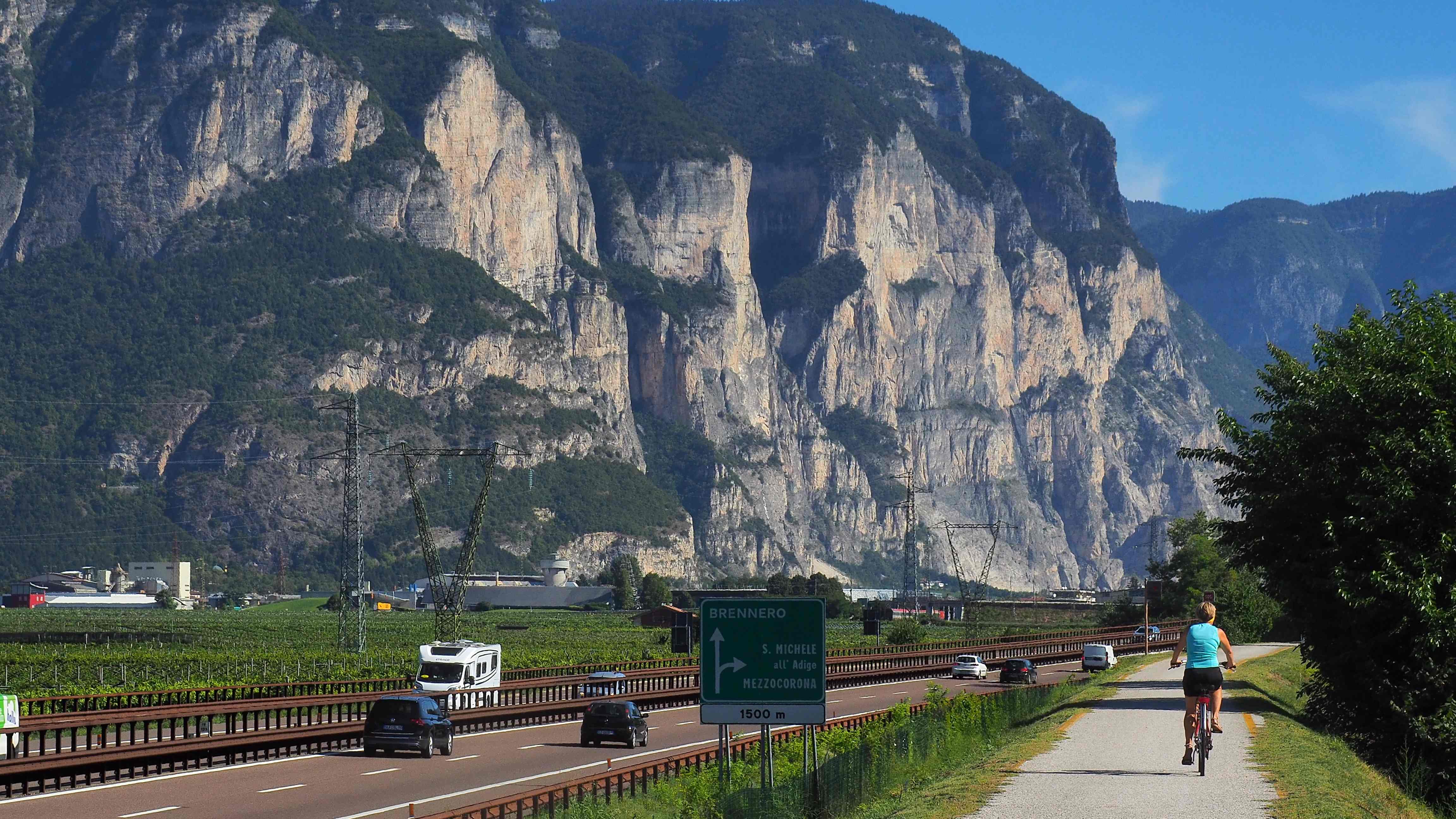 Tag 23 (Etappe 18). Ich habe mein endgültiges Ziel nach 1270 km erreicht: Bozen / Bolzano. Es war eine entspannte Etappe, die über 63 km von Trient nach Bozen führte. Nach einigem Zickzack durch den Stadtrand, erreichte ich nach etwa 15 km wieder die Radroute durch das Etschtal. Es ging fast immer leicht bergauf und ich hatte auch etwas Gegenwind, aber das war nicht besonders zu spüren. Dies ist ein echter 5-Sterne-Radweg mit Parknischen, die mit Bänken, einem Fahrradständer und einem Mülleimer ausgestattet sind, sowie Parkplätzen und Rastplätzen mit Gastronomie! Die meisten Radfahrer radeln bergab nach Süden (und fahren wahrscheinlich mit dem Zug zurück). Hier einige Bilder der schönen Route. Morgen werde ich einige Bilder von Bozen zeigen.