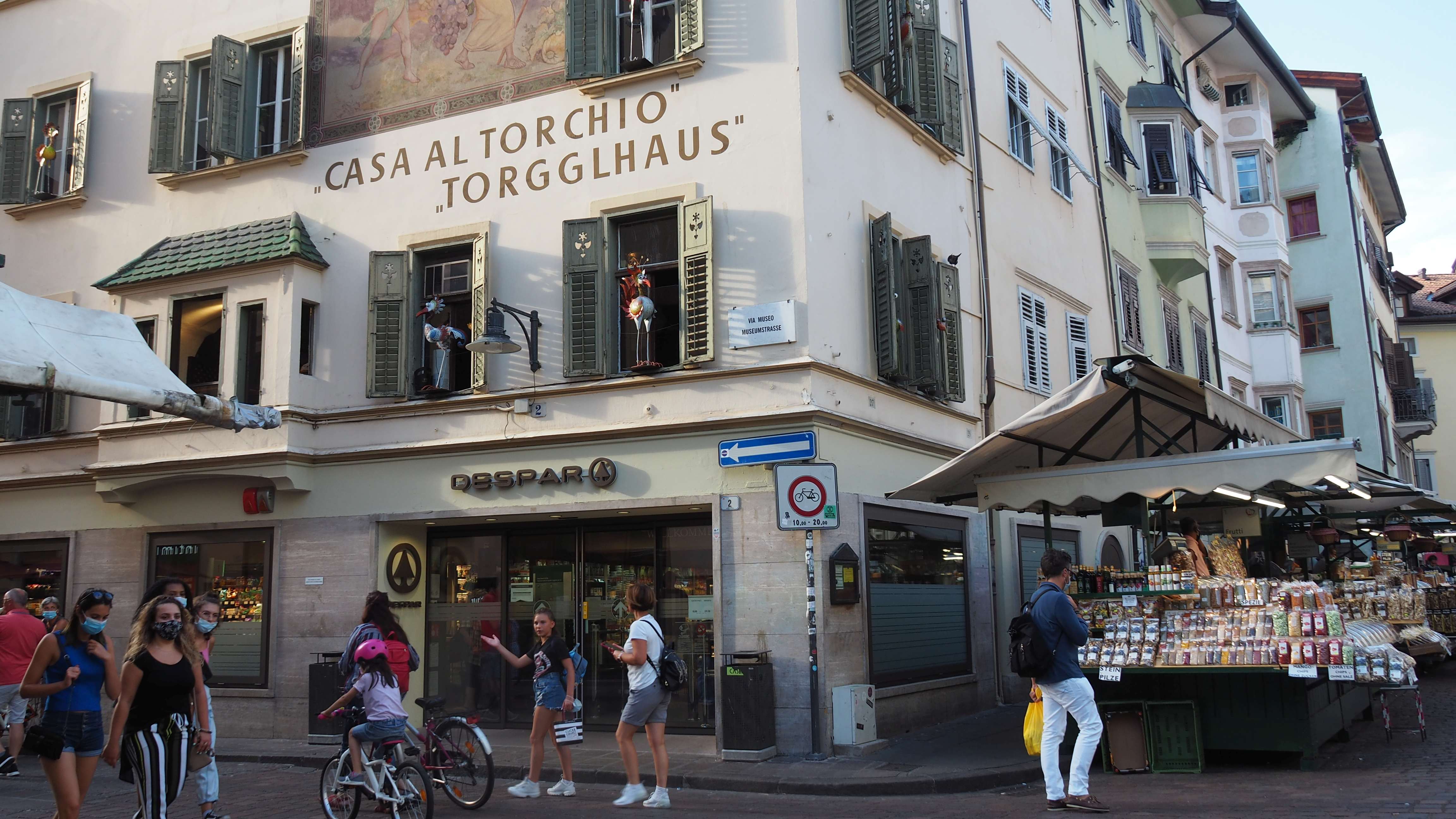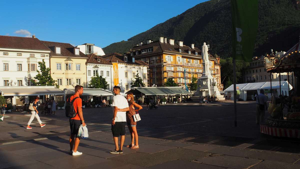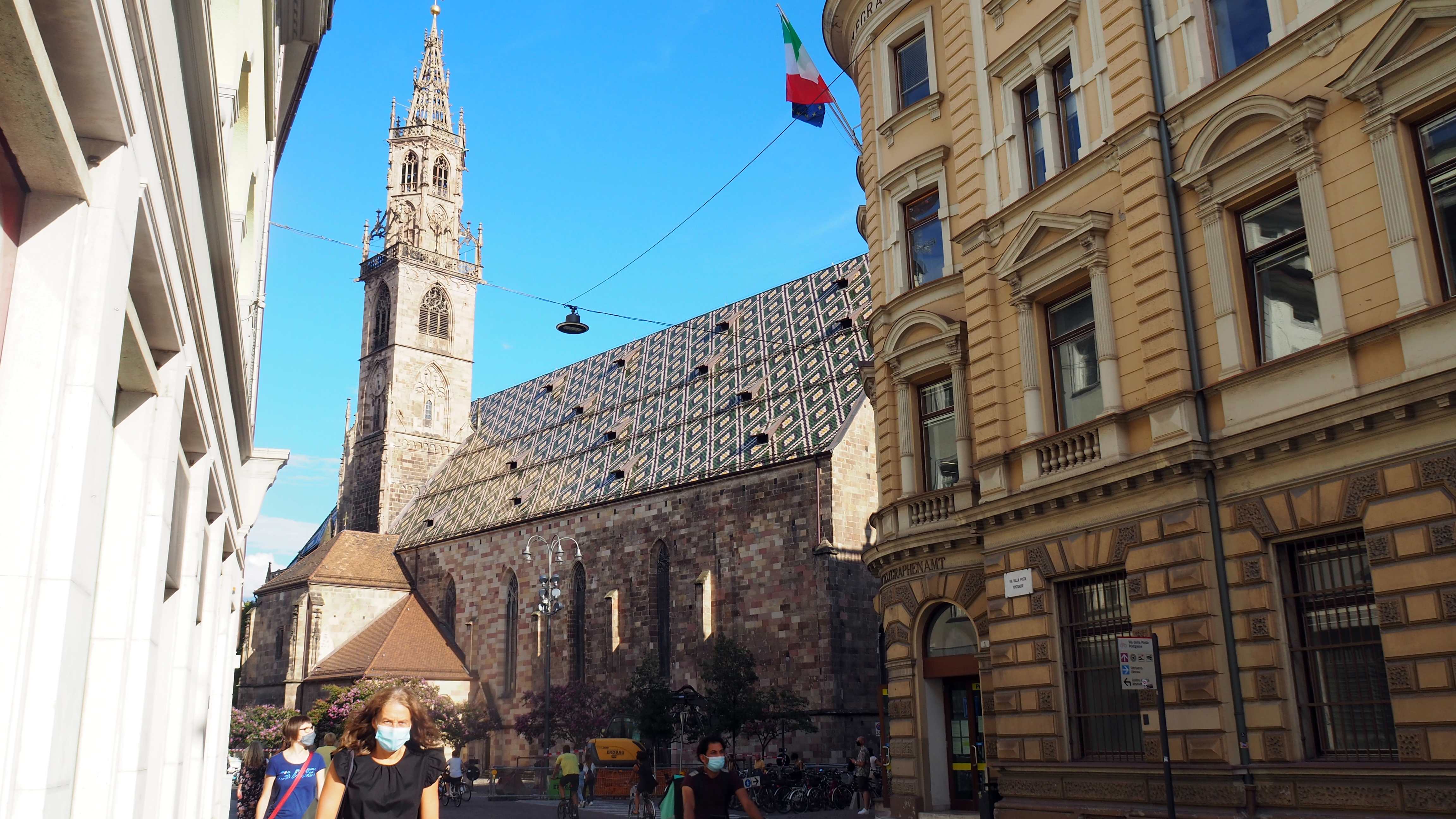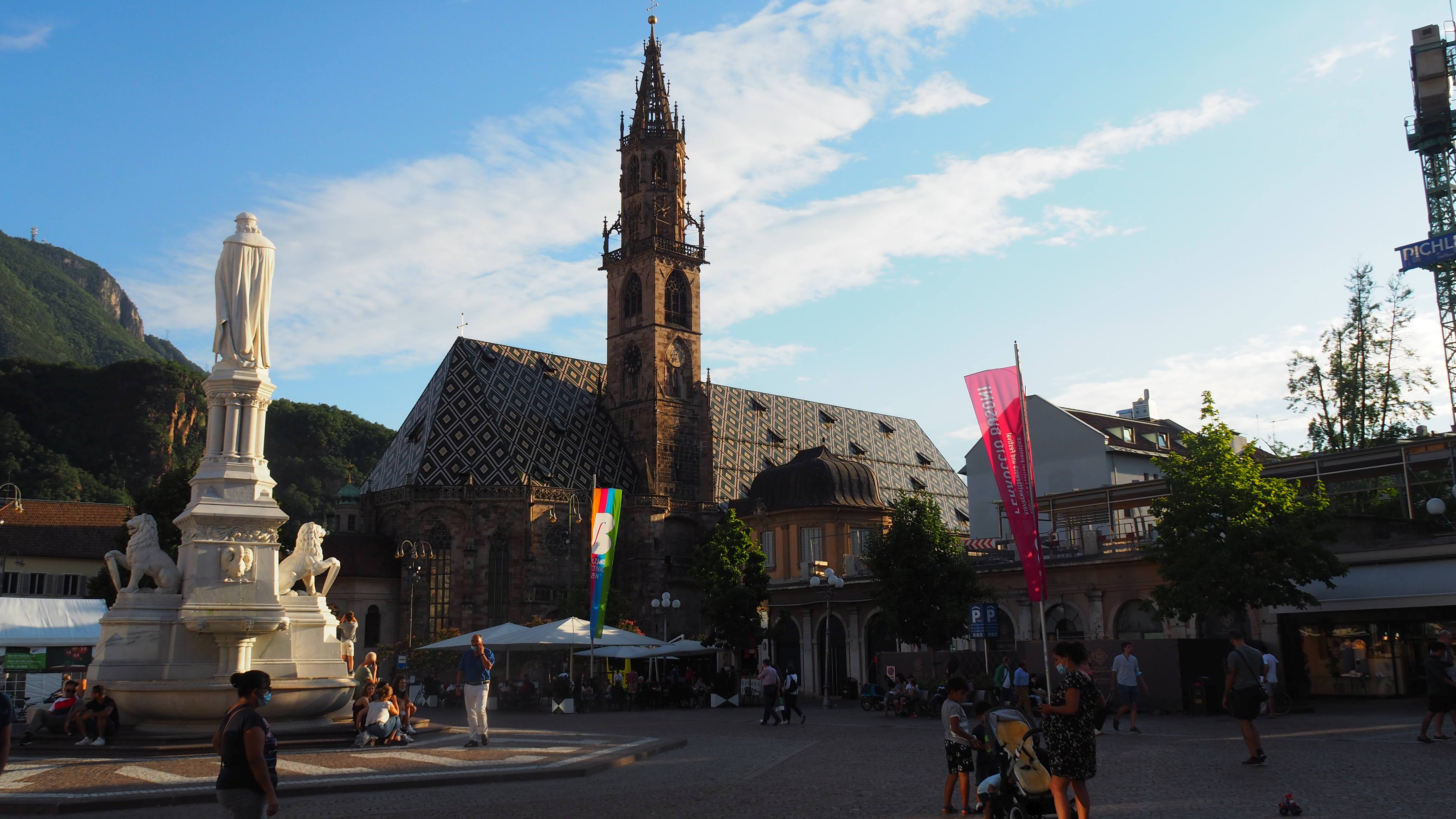 Tag 24: Bozen / Bolzano hat einen ganz anderen Charakter als Trient / Trento, das etwa 60 km südlich liegt. Dies ist auf seine komplizierte Geschichte und den Wechsel von Österreich nach Italien nach dem Ersten Weltkrieg zurückzuführen. Außerdem wurden hier viele Italiener von Mussolini angesiedelt, um die Mehrheitsverhältnisse zugunsten der Italiener zu ändern. Somit leben nur noch etwa 25% der deutschsprachigen Einwohner in Bozen / Bolzano. Aber ich höre viel Deutsch und man kann mit fast jedem deutsch sprechen. Hier sind auch viele deutsche Touristen, vorzugsweise aus Bayern.