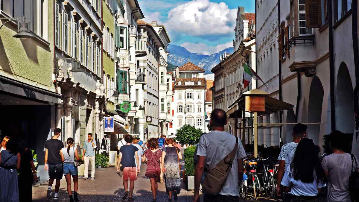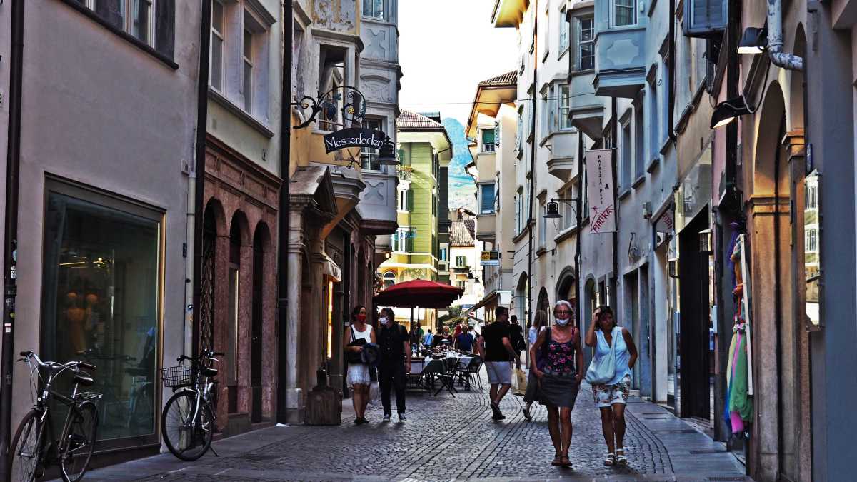 Die Altstadt hat keinen so einheitlichen Stil wie Trient, mittelalterliche Gebäude mischen sich mit neueren. Auch gab es am Ende des 2. Weltkrieges Bombenangriffe und die entstandenen Lücken wurden teilweise mit Neuem gefüllt, wie die gewaltige Sparkasse im 50er-Jahre-Stil am Walther-von-der-Vogelweide-Platz.