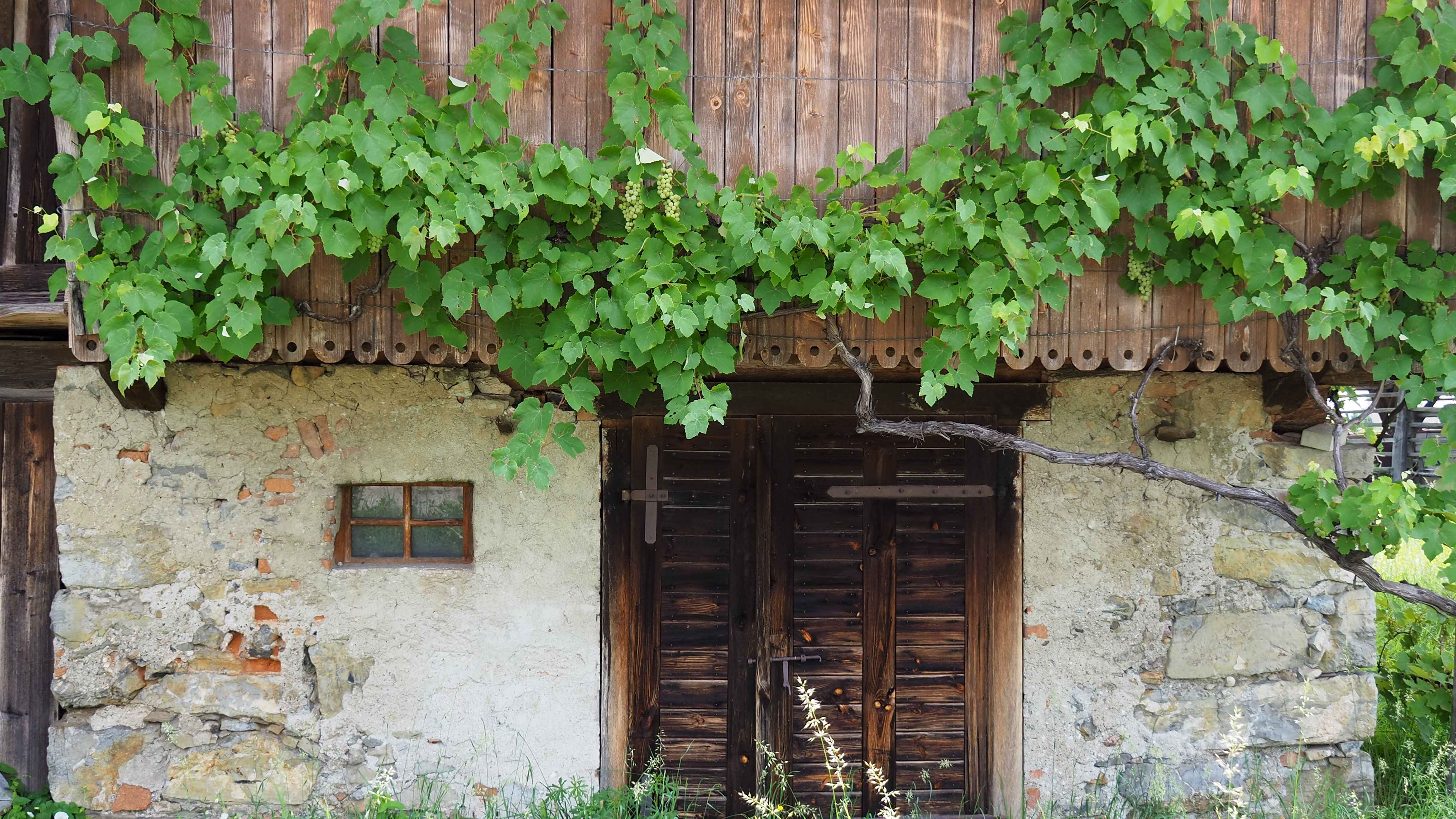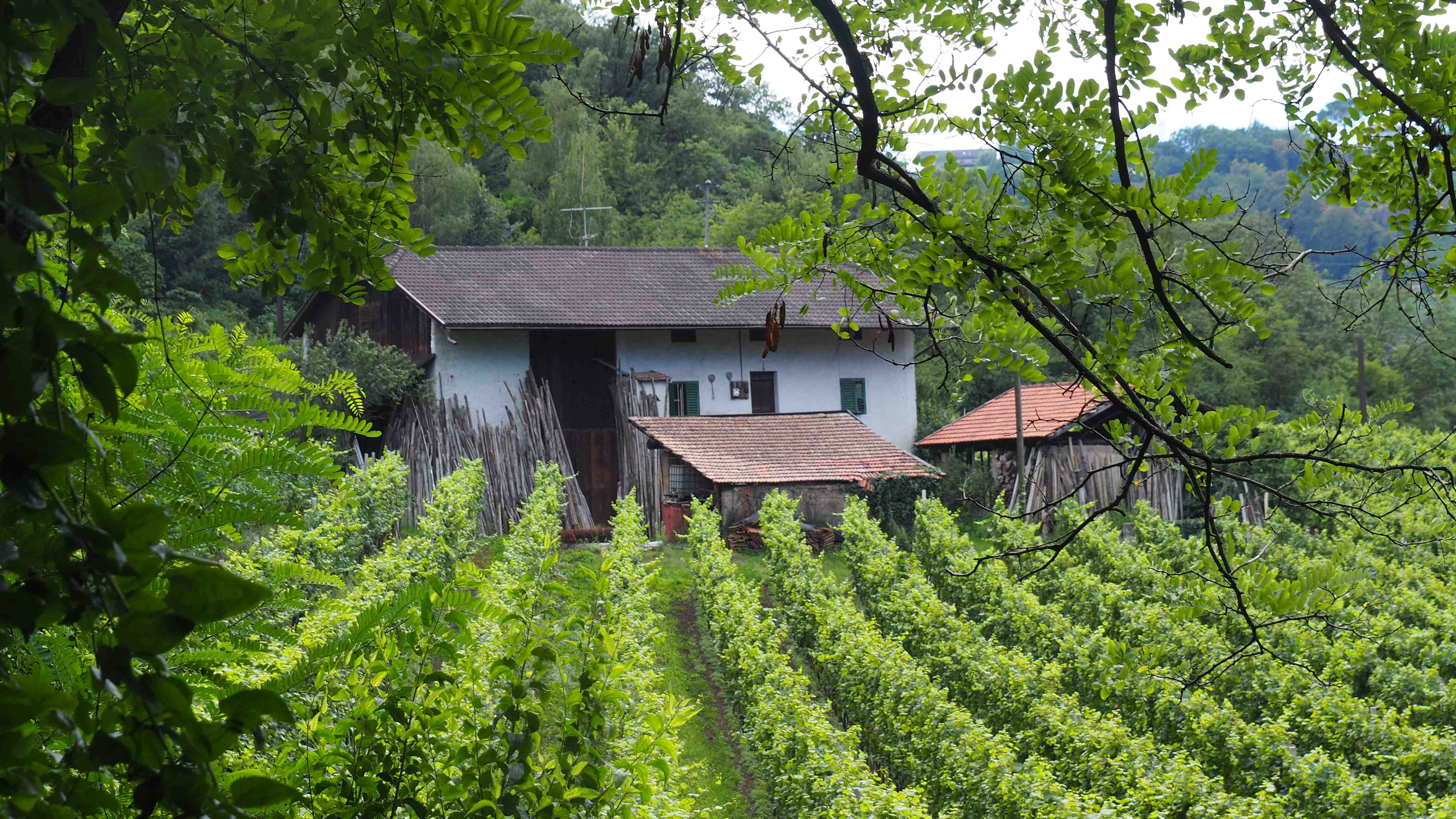 Dann ging es weiter durch Weinfelder und ich pflückte heimlich eine der unwiderstehlichen Trauben, süß und gleichzeitig sehr säurehaltig, wohl noch nicht ganz reif. Der Himmel war immer noch nicht wieder klar. Ich hatte heute keine Lust mehr weiterzufahren, darum fragte ich auf einem Bauernhof, ob ich bei ihnen zelten dürfte. Ich durfte! Hier leben rumänische Gastarbeiter. Der alte Padrone kam auch kurz in einem uralten Fiat Panda vorbei und begrüßte mich freundlich. Also ist alles in Ordnung. Jetzt sitze ich auf der Veranda und schreibe, während einer der Gastarbeiter laut mit seiner Tochter in Rumänien telefoniert und mir hausgemachten Rotwein einschenkt. Cabernet.