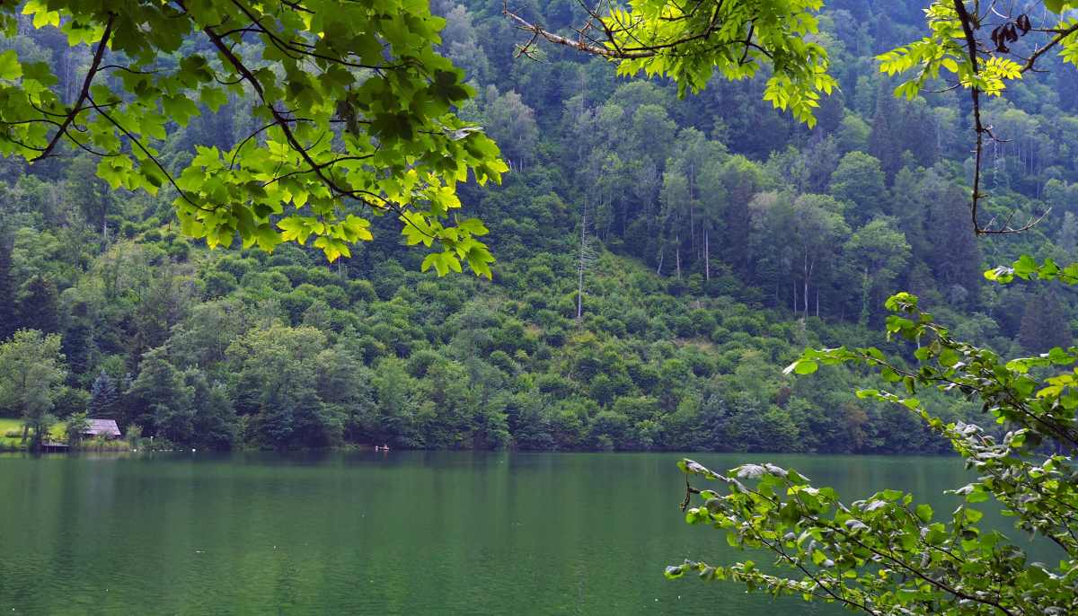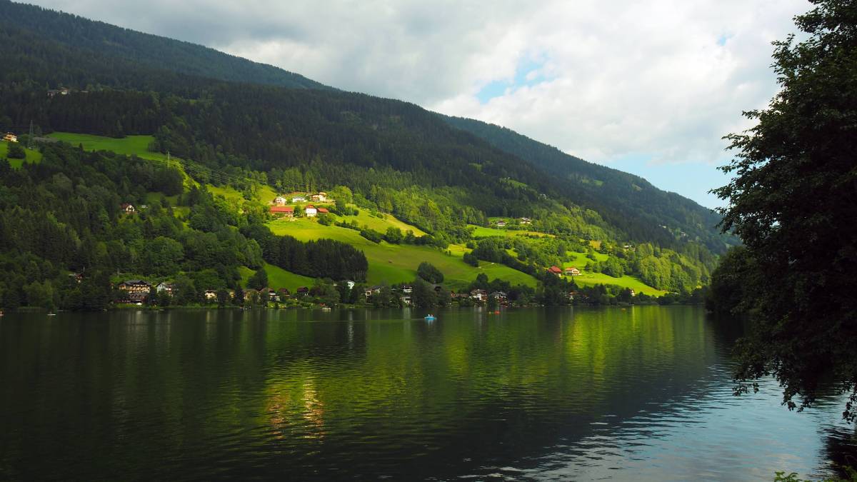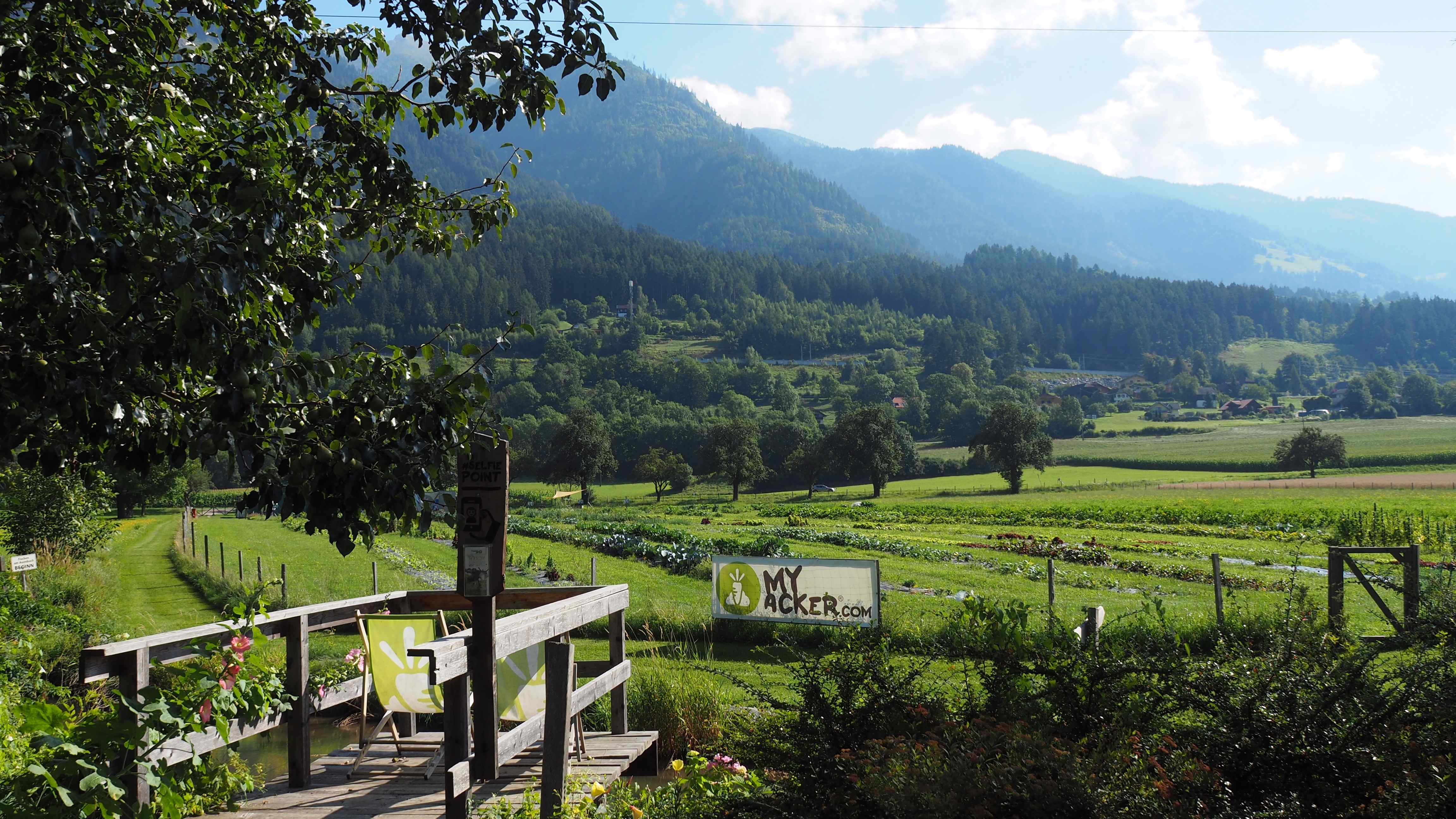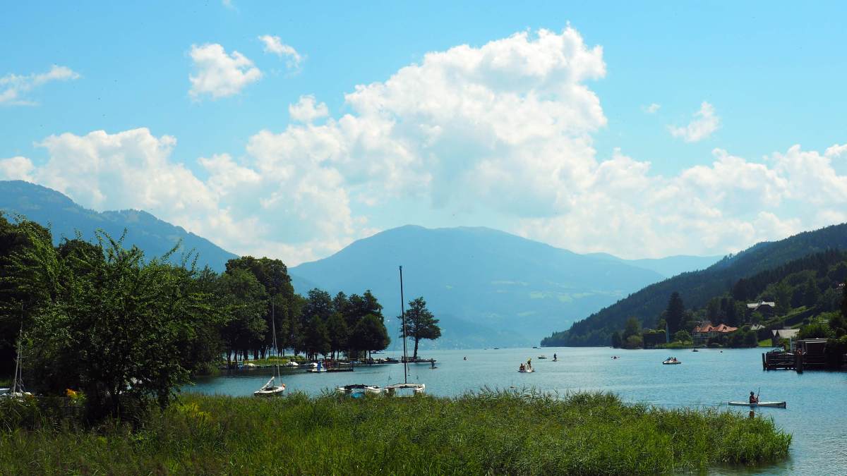 Tag 5 (Etappe3). Wieder ein sonniger Tag mit einigen interessanten Stellen, wie einer Radfahrer-Raststätte, die von myacker.com betrieben wird. Die bieten Ackerflächen virtuell zum Mieten an. Man kann sich dann die Ernte zusenden lassen. Es gab ein Getränkesortiment und eine Kaffeemaschine zum Selberbrühen, alles mit einer Kasse des Vertrauens (!), Preise standen dran. Ich wählte dann die Route am Nordufer des Millstätter Sees. Später ging es steiler bergauf entlang zweier kleinerer idyllischer Seen und dann bergab zum Ossiacher See, wo ich jetzt im vollen Restaurant des Campingplatzes sitze. Ich brauche ja immer so etwas wie einen Tisch für mein kleines Keyboard zum Schreiben. Die Dame am Nachbartisch lacht kreischend wie eine Hyäne, nur lauter …