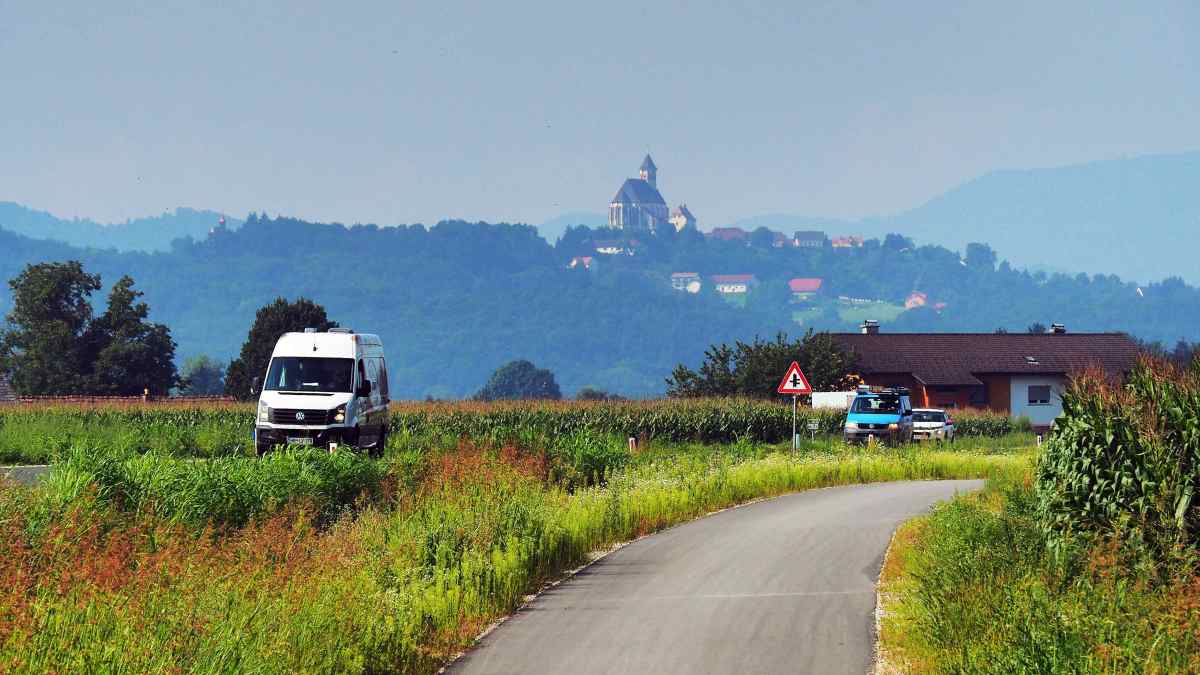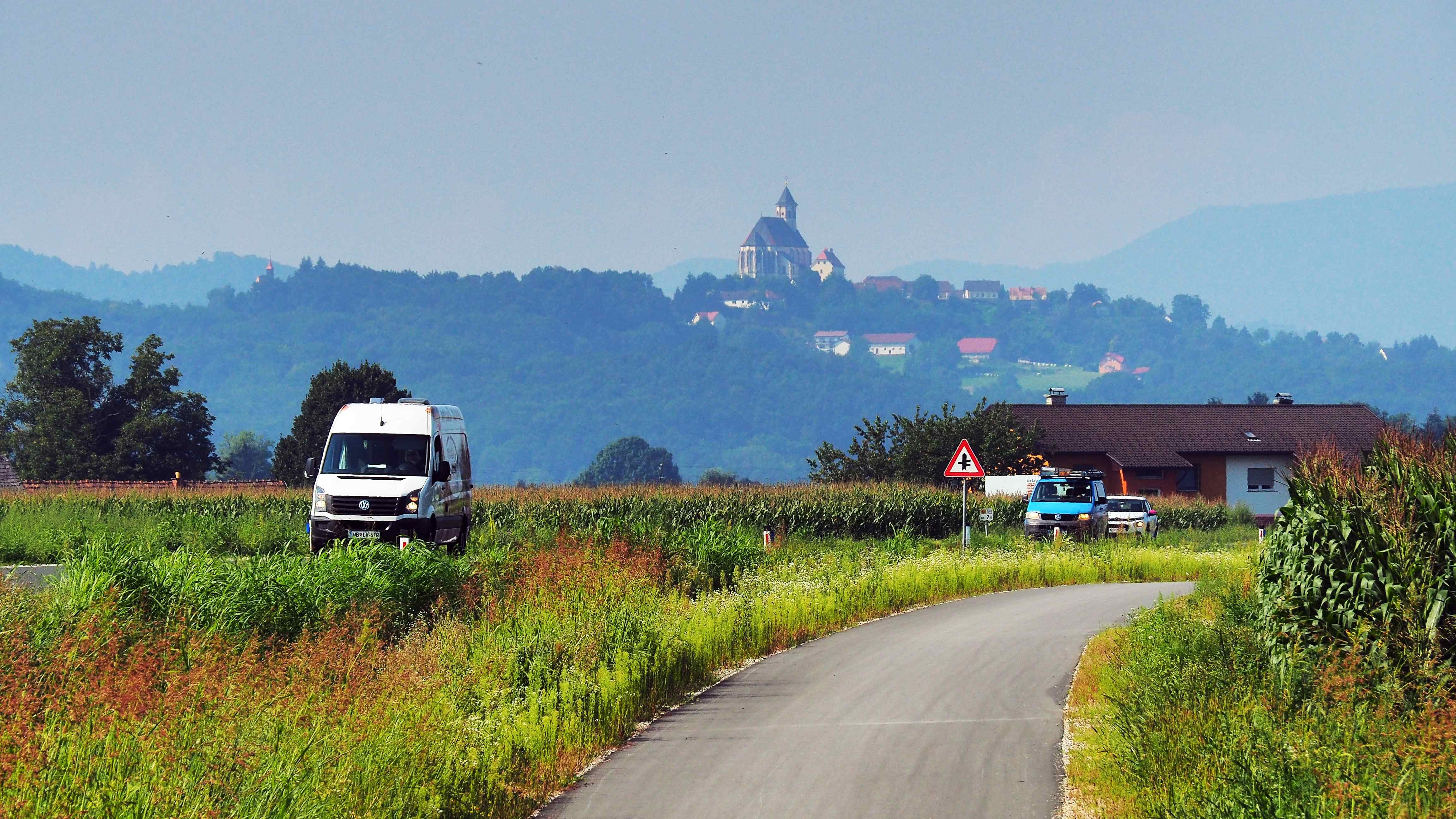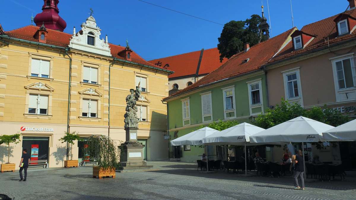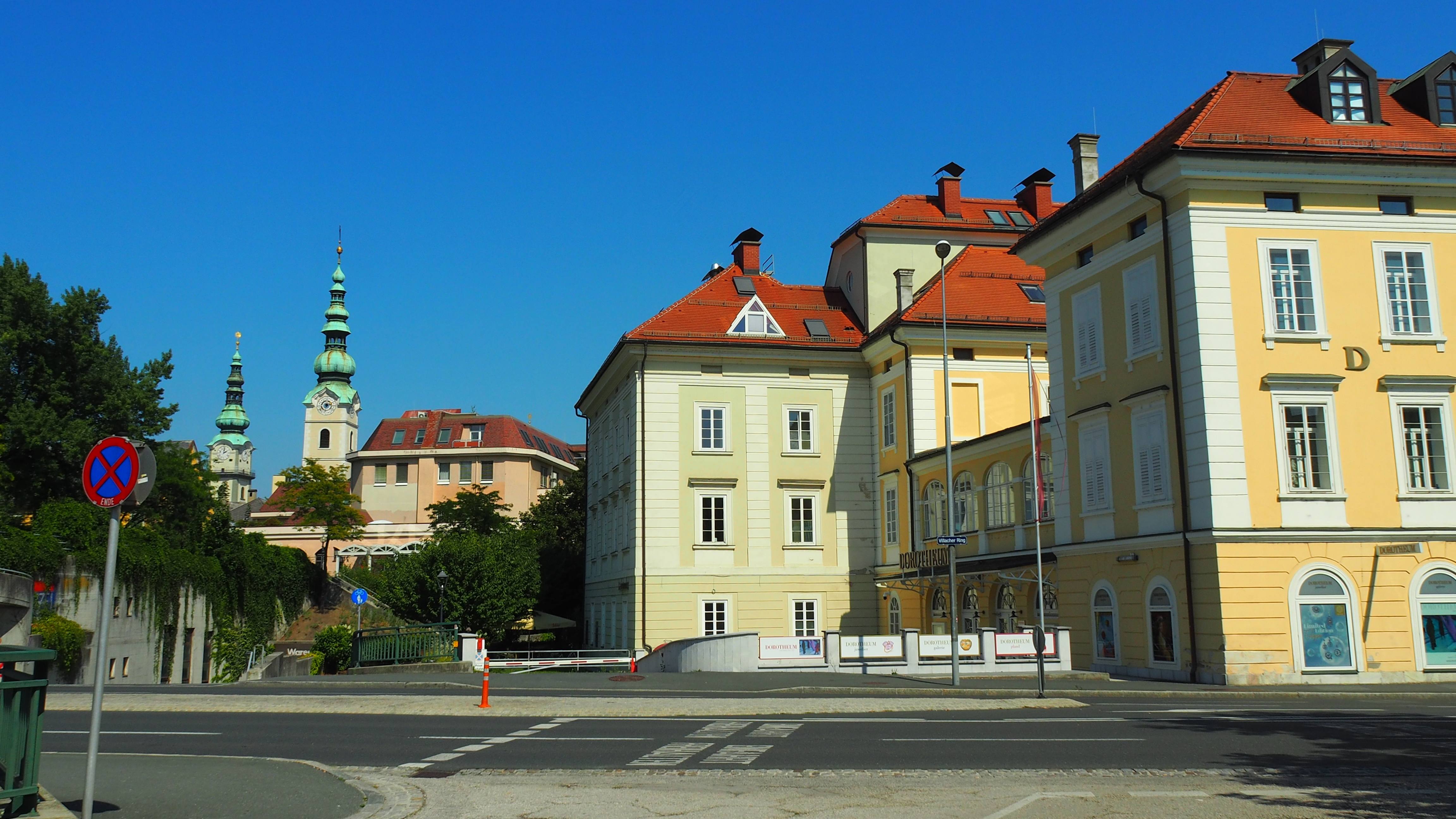 Heute war der nächste heiße Tag. Ich fuhr an der Drau /Drava entlang, entschied mich aber weitgehend die Straße anstatt des Drau Radwegs zu nehmen, weil dieser weite Schlenker über steile Hügel machte. Und darauf hatte ich bei den Temperaturen keine Lust mehr. In der Provinzhauptstadt Maribor, deren übersichtliche Altstadt ich kurz besuchte, war es mir dann aber noch zu früh, um nach einer Unterkunft zu suchen und so beschloss ich, die Etappe bis zum Campingplatz von Ptuj zu verlängern, denn in Maribor hatte ich keinen gefunden. 79 km bis dahin. In der Hitze fühlten die sich aber wie 100 km an.