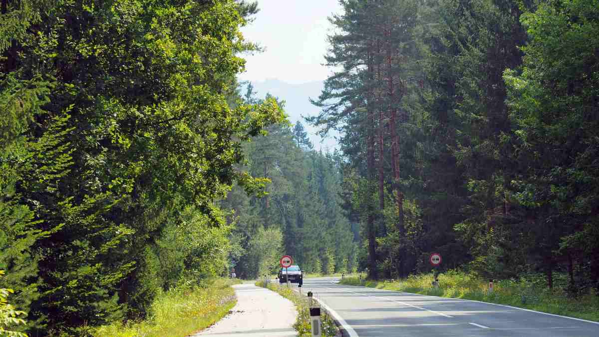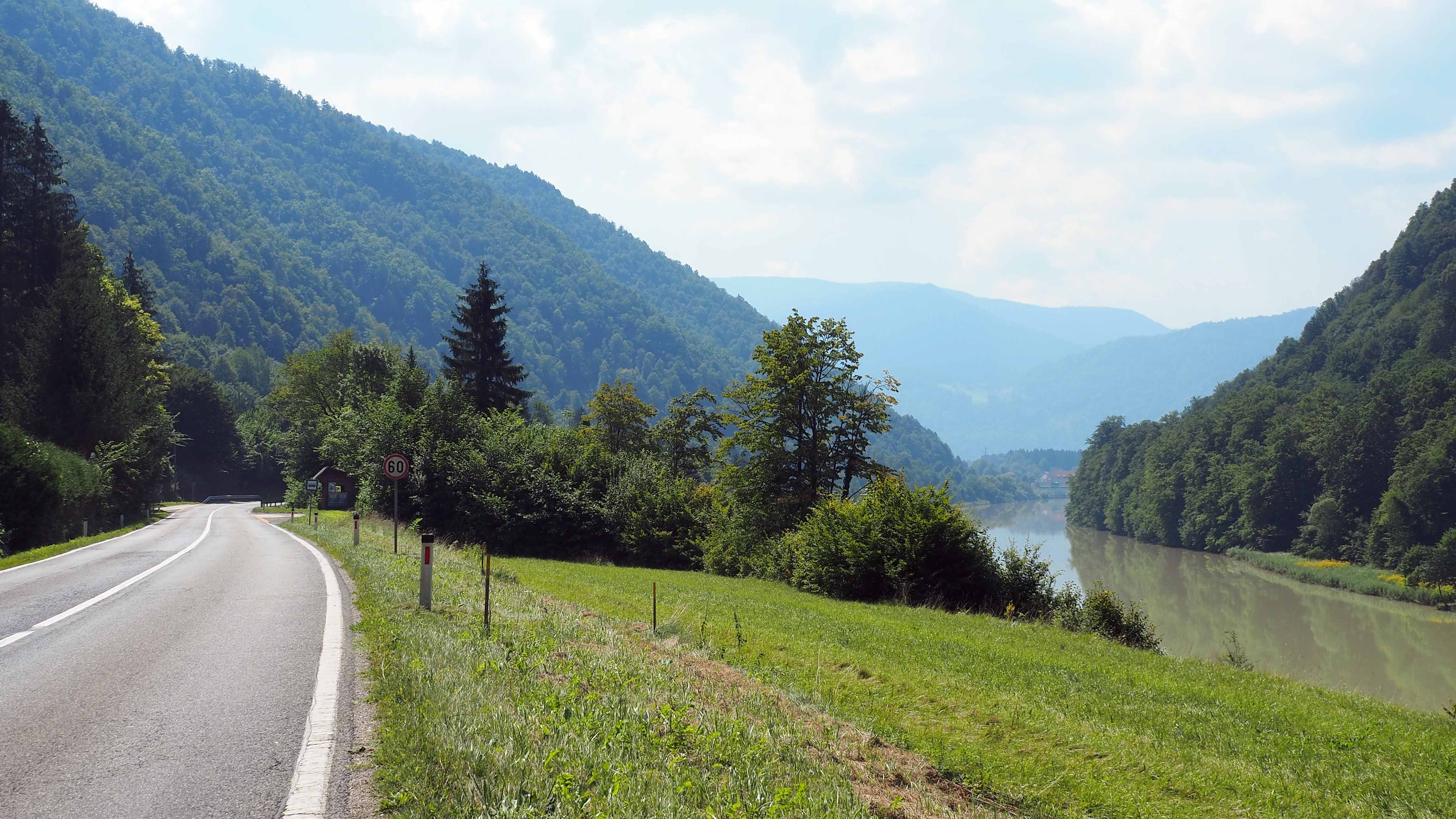 Ich war besorgt, dass die Slowenen mich an der Grenze zurückschicken könnten, weil für Nicht-Österreicher die meisten Grenzkontrollpunkte wegen der Pandemie nicht erlaubt sind, selbst wenn sie auf der Grünen Liste der „nicht gefährlichen Länder“ stehen. Ein Verbot bedeutete entweder einen Umweg über einen über 1300 m hohen Pass (innerhalb von 10 km), oder ich müsste zurück und zum Loibl-Pass fahren. Das würde meine Planung völlig verändern. Aber am Grenzübergang hinter Lavamünd gab es dann gar keine Kontrolle. Nur eine englischsprachige schriftliche Warnung am Übergang „nur für Österreicher und Slowenen“. Ok, dann ich spreche eben kein Englisch und fuhr nun hinein in mein Land Nummer 35, ein Neues also!