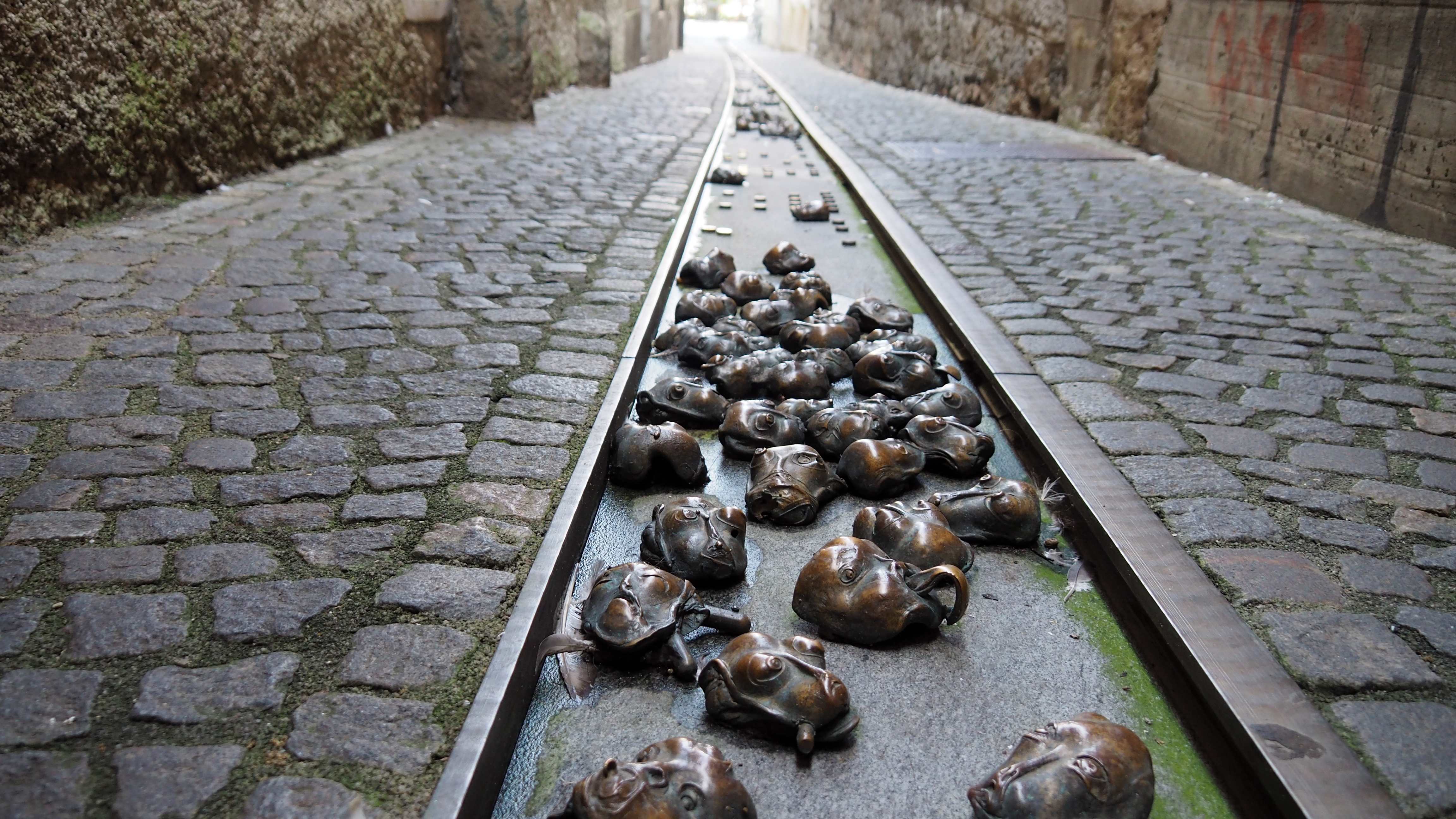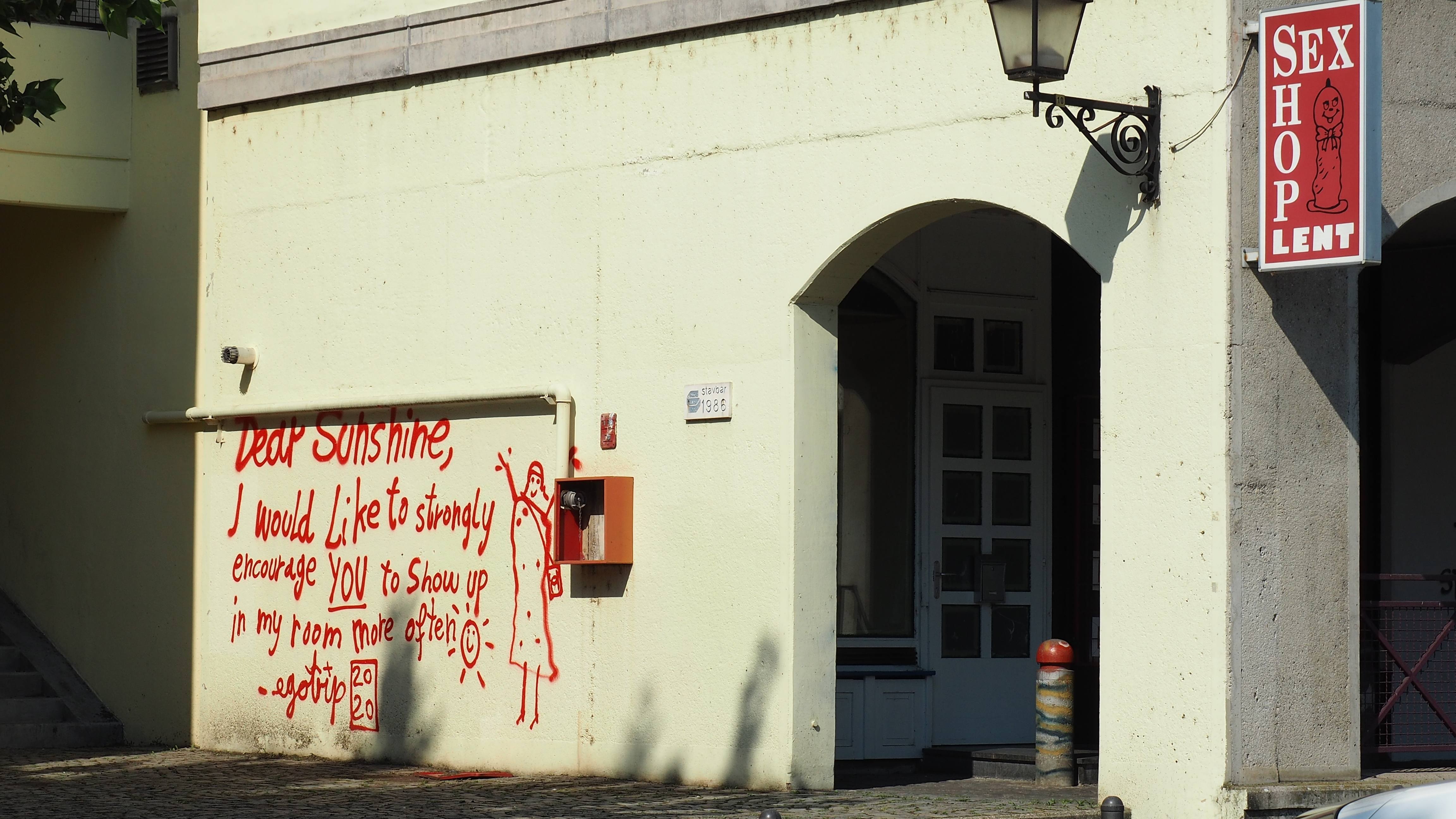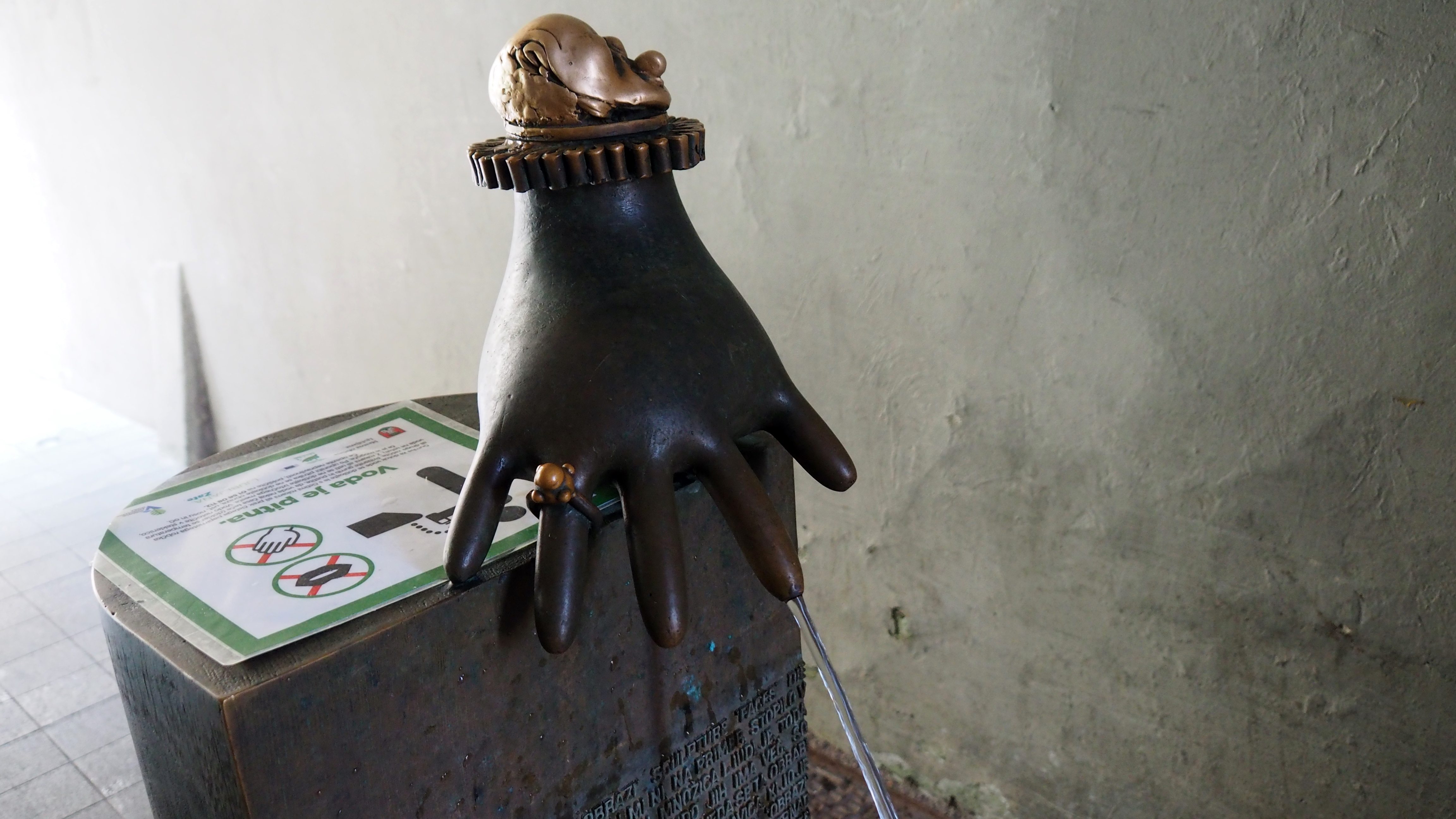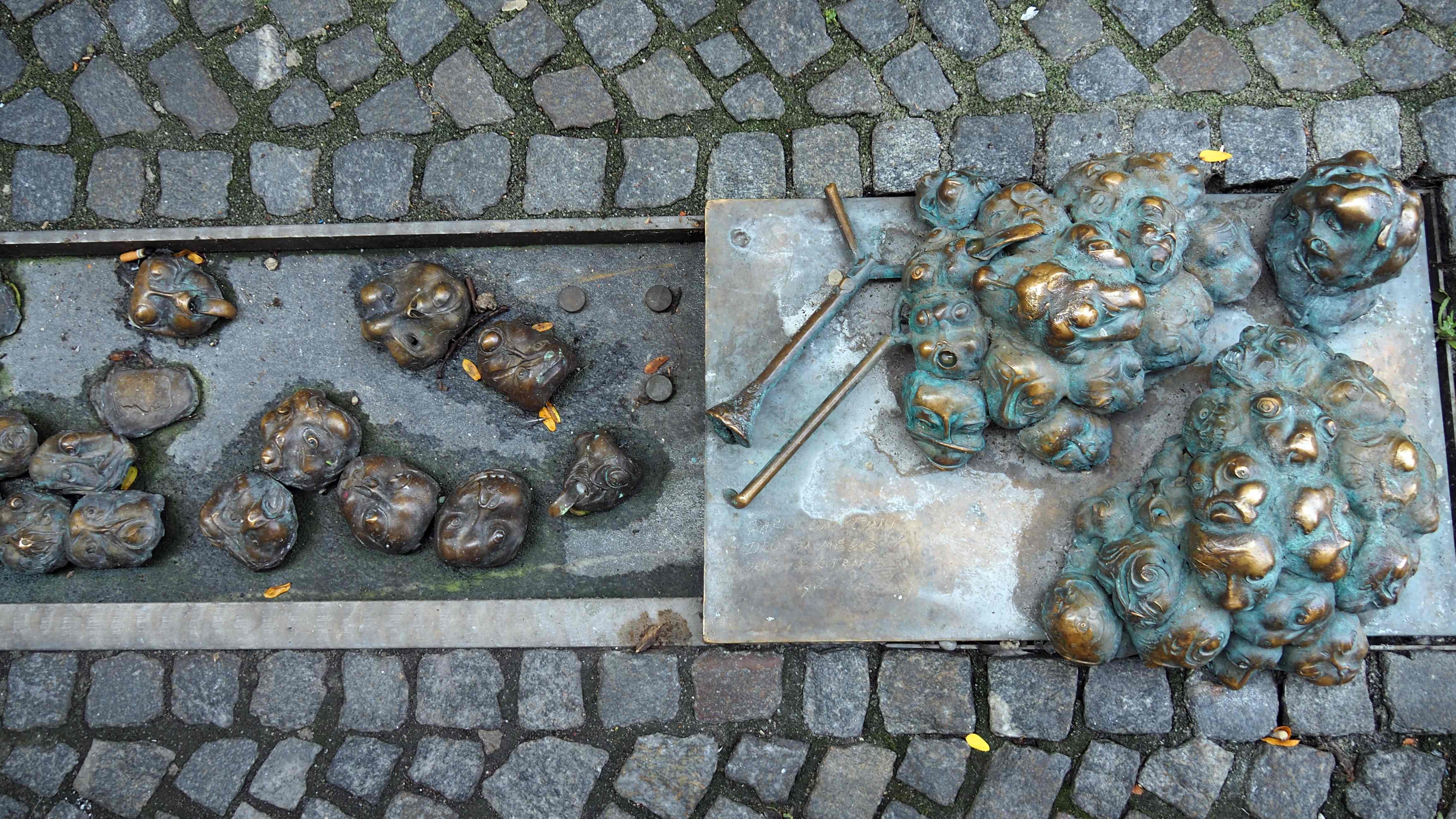 Und dann bog ich in eine winzige Seitengasse ab und fand ein interesantes Kunstwerk, die bronzene Darstellung eines Rilke-Textes. „Daß es mir zum Beispiel niemals zum Bewußtsein gekommen ist, wieviel Gesichter es giebt. Es giebt eine Menge Menschen, aber noch viel mehr Gesichter, denn jeder hat mehrere. Da sind Leute, die tragen ein Gesicht jahrelang, natürlich nutzt es sich ab, es wird schmutzig, es bricht in den Falten, es weitet sich aus wie Handschuhe,