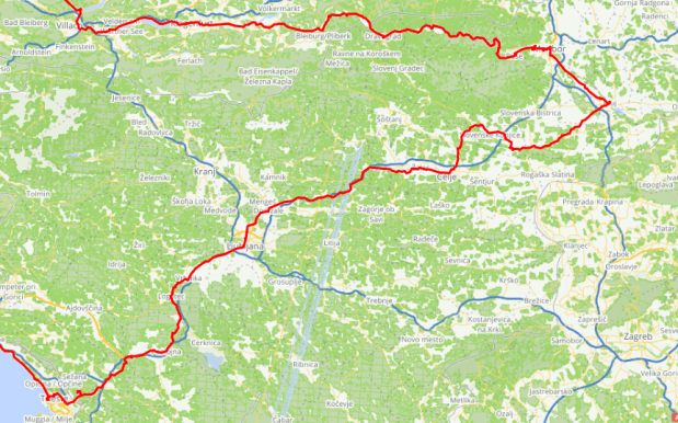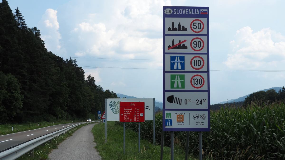 Tag 8 (Etappe 6). Mir war gar nicht aufgefallen, wie klein Slowenien ist. Es ist nicht größer als das Bundesland Sachsen-Anhalt in Deutschland und hat eine ähnliche Anzahl von Einwohnern … ca. 2 Millionen. Die Niederlande sind doppelt so groß, das kleine Ungarn viermal. Ich habe noch eine Mischung aus russischem, tschechischem und polnischem Vokabular in meiner Erinnerung: mein „panslawisches Wortgemisch“ sozusagen. Nicht genug zum Unterhalten, aber genug um einige Begriffe oder Hinweise zu verstehen, die ich unterwegs auf Schildern oder Werbetafeln zu lesen bekomme. Ich muss ja immer alles lesen, was mir vor die Augen kommt!