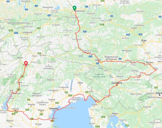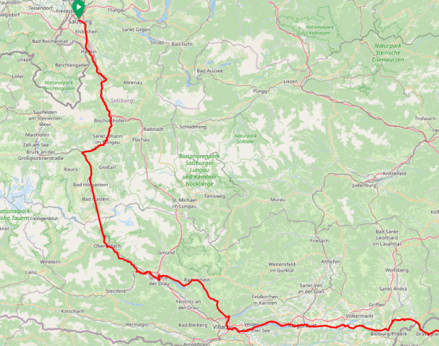 Ich werde in Salzburg (Österreich) beginnen und plane nach Überquerung der Alpen durch Slowenien und Norditalien nach Bozen zu radeln. Verschiedenes wird ungewöhnlich sein: Ich weiß noch nicht, ob ich die Grenze im Drau-Tal (Drau-Radweg) überqueren darf oder ob die Slowenen darauf bestehen werden, dass ich nur die Grenzübergänge benutze, die für Ausländer aus Ländern der Grünen Liste (die Unbedenklichen) bestimmt sind. Ich weiß nicht, wie voll die Campingplätze oder Herbergen sein werden, wenn mehr Menschen als gewöhnlich ihre Ferien in ihrem eigenen Land verbringen. Frage um Frage. Ich werde eine neue Kamera (Olympus EM 10-Mark II) verwenden und hoffe, damit noch bessere Bilder zu machen. Ich hoffe, dass das Wetter in Salzburg nicht so dramatisch schlecht sein wird, wie es die Wettervorhersage zeigt…