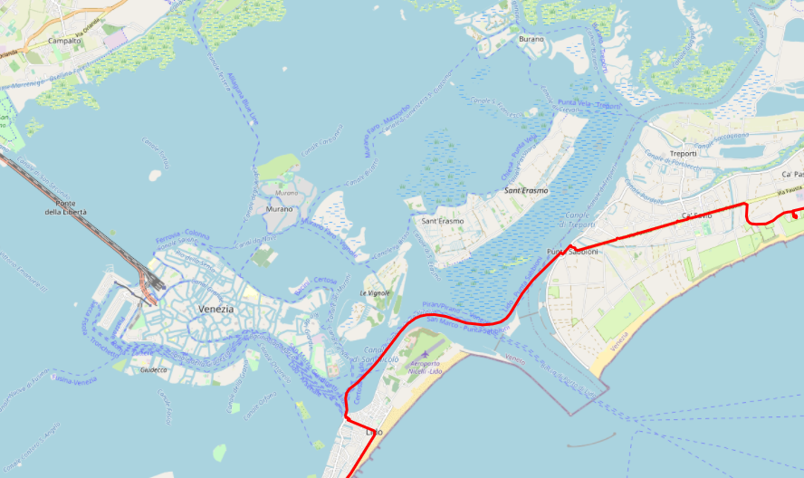 Da Venedig mir endgültig zu heiß und zu voll war, kam ich nicht in Versuchung noch einmal direkt dorthin zu fahren, sondern setze meine Tour fort. Ich radelte daher schon vor dem Frühstück nach Punta Sabbione, der zentralen Anlegestelle am westlichen Ende der (Halb)insel, damit mir später wegen eventueller Überfüllung nicht droht mit meinem Fahrrad nicht mitgenommen zu werden. Denn in den Fahrplänen steht, dass das es keine Garantie gibt und der Kapitän entscheidet. Es hat funktioniert.