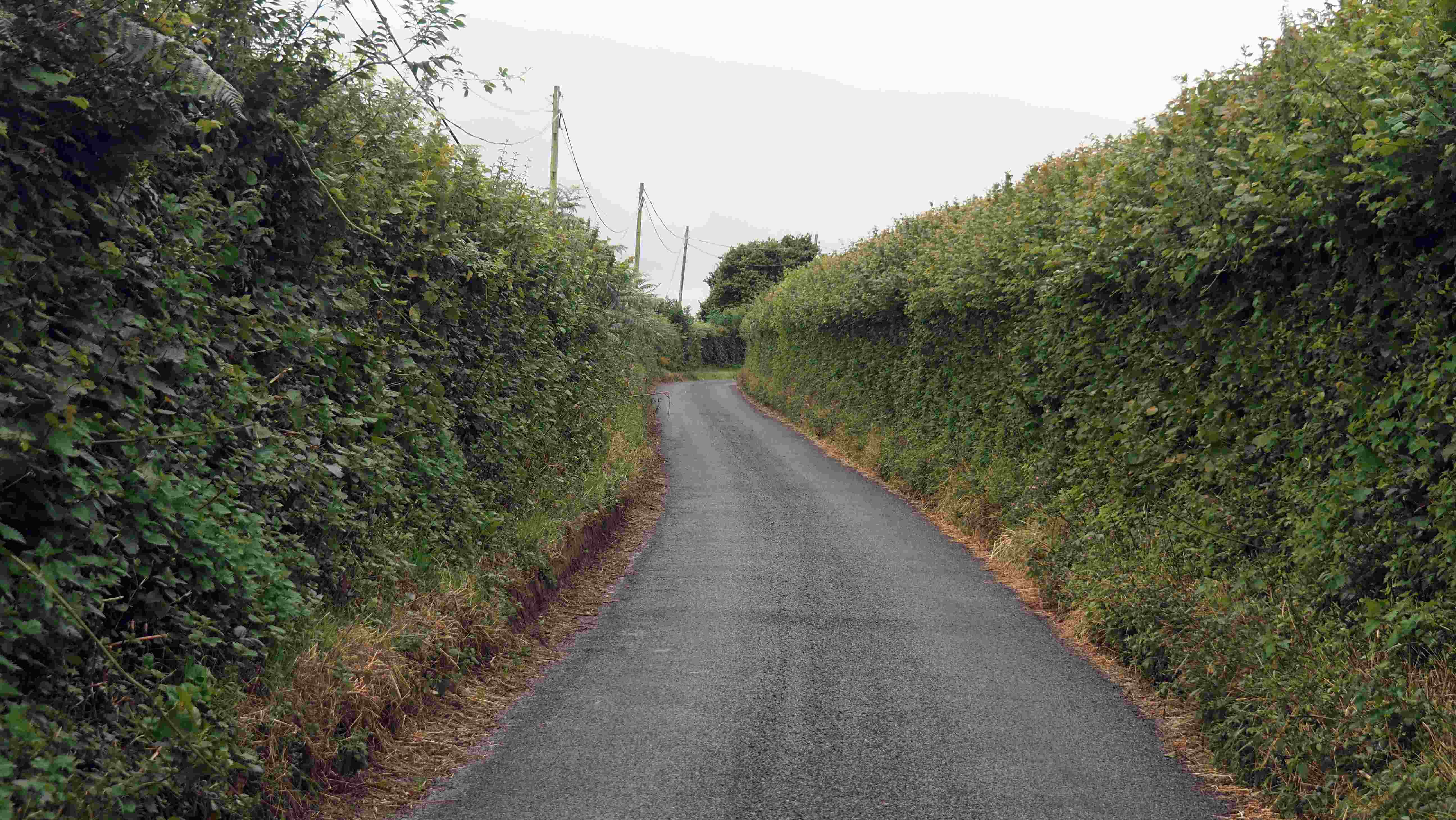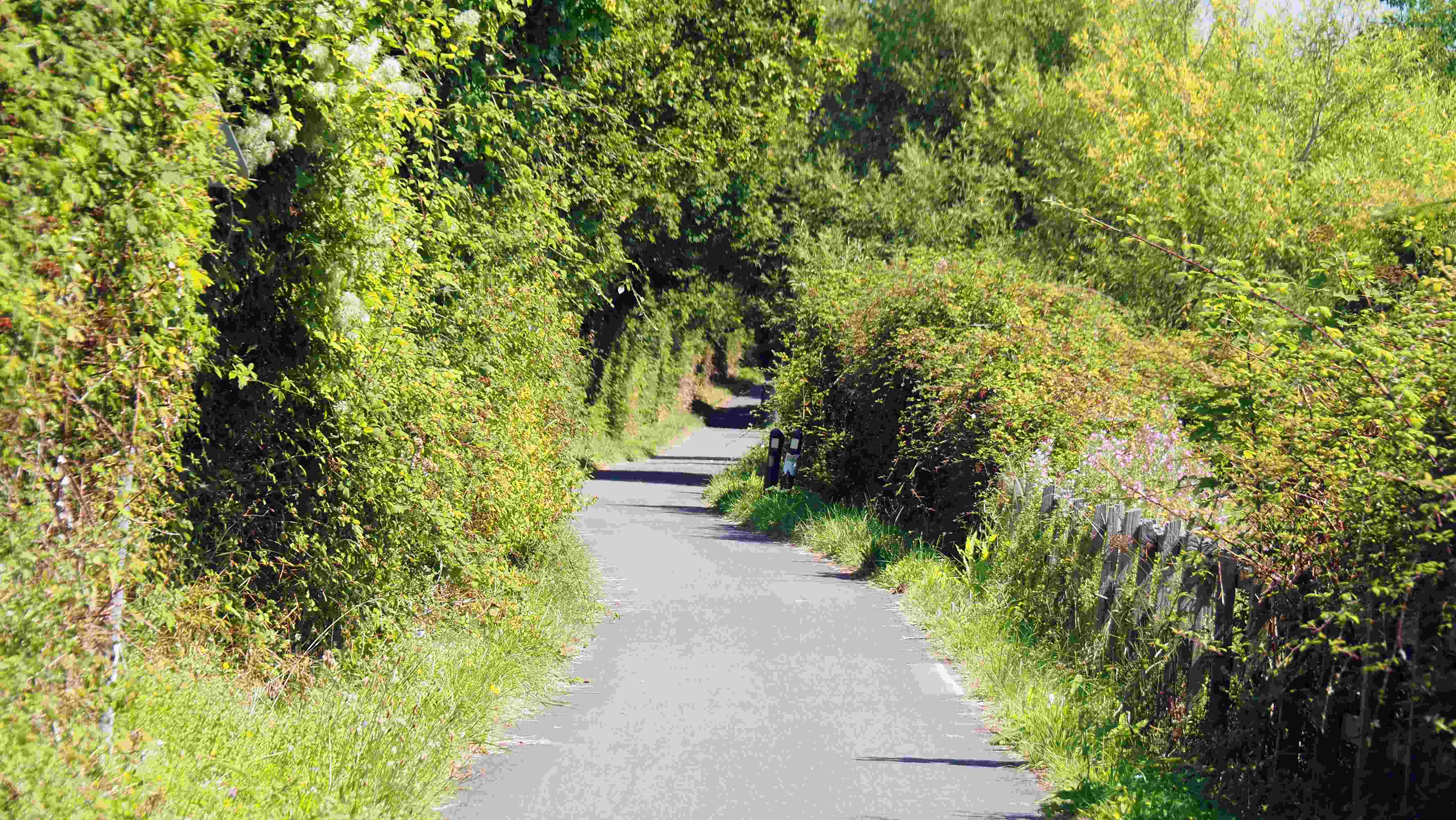 Nach einem Schlenker über eine als Radweg umgebaute ehemalige Bahnstrecke ging es auf sehr engen Sträßchen hügelaufwärts. Zum Glück mit wenig Verkehr.