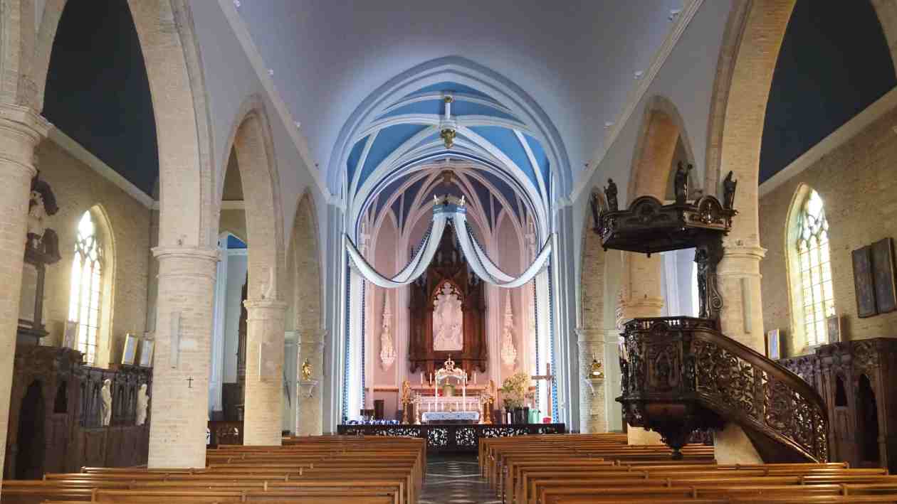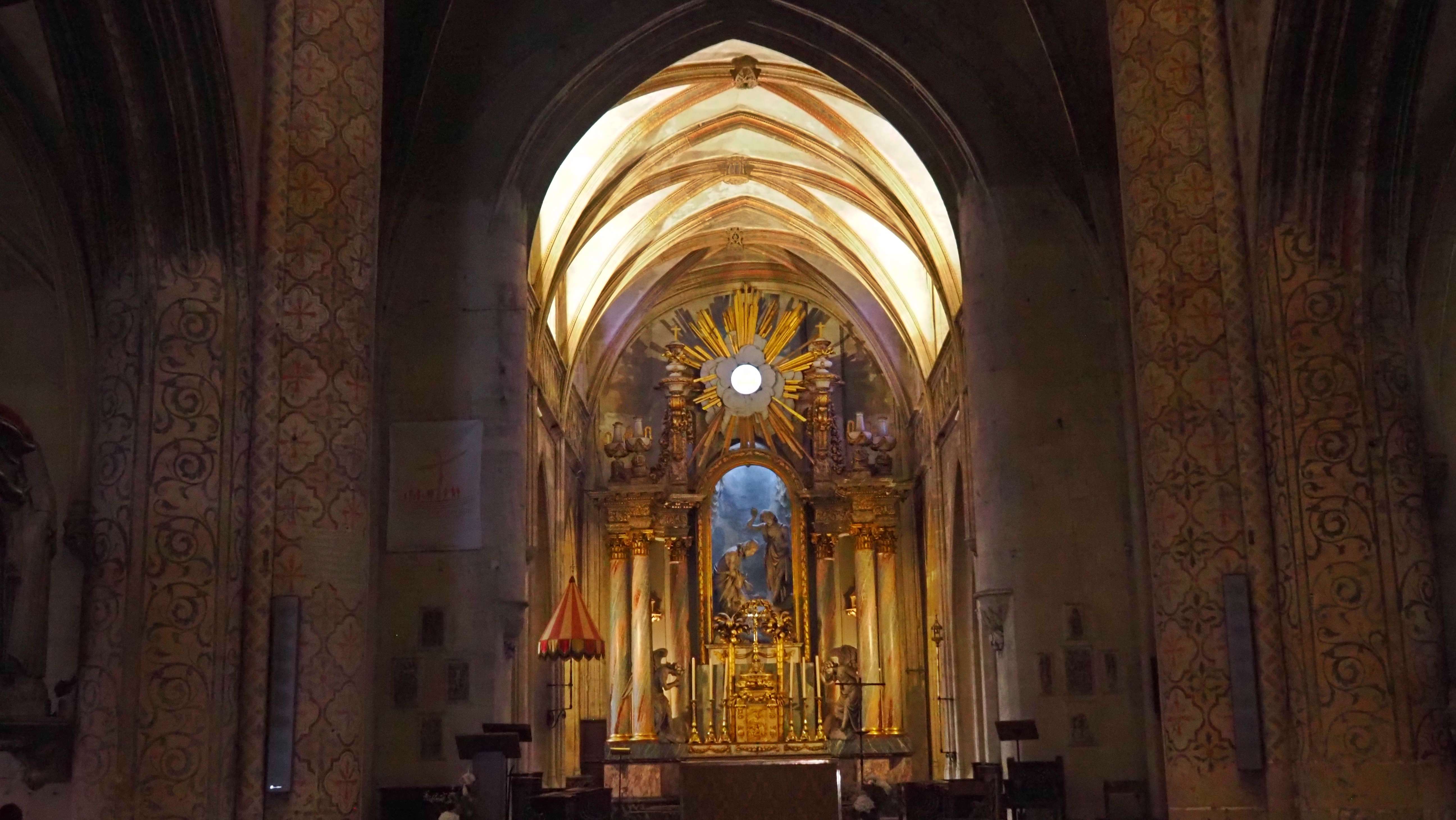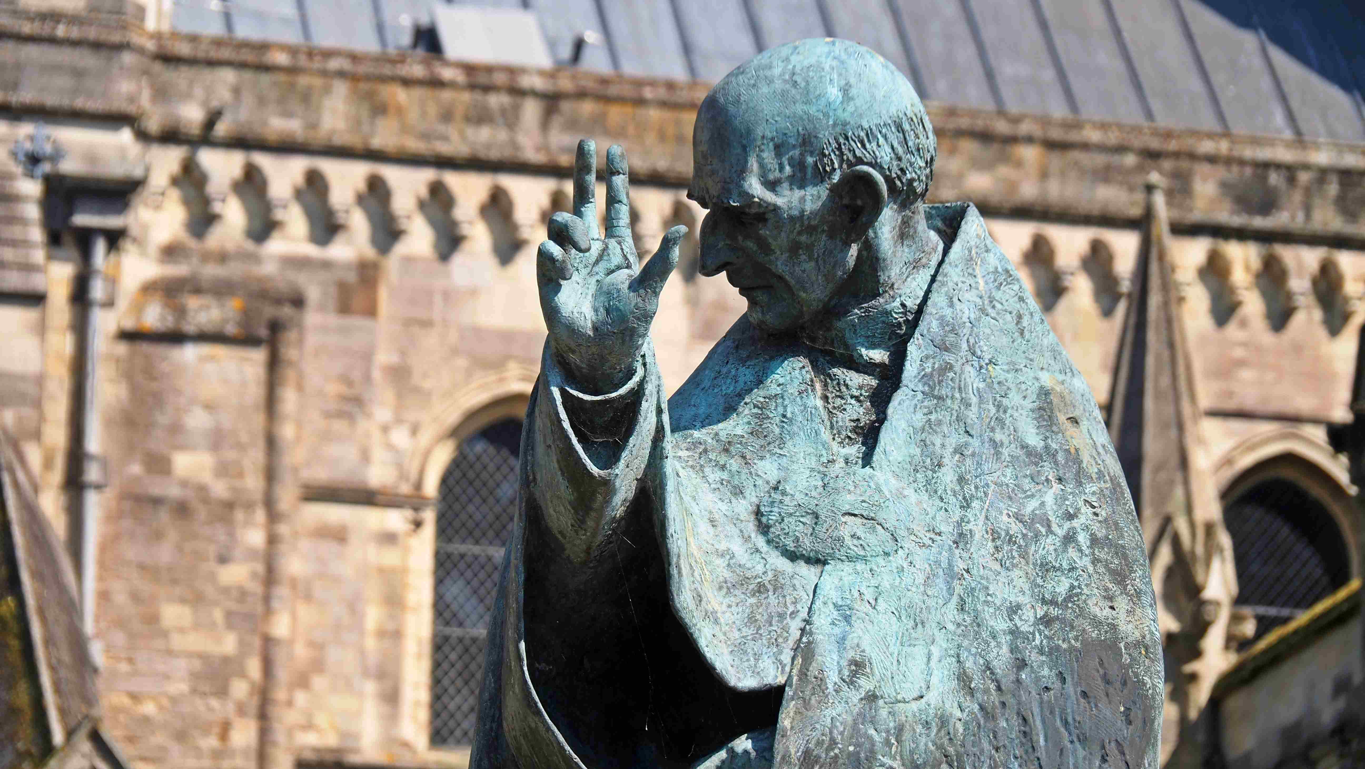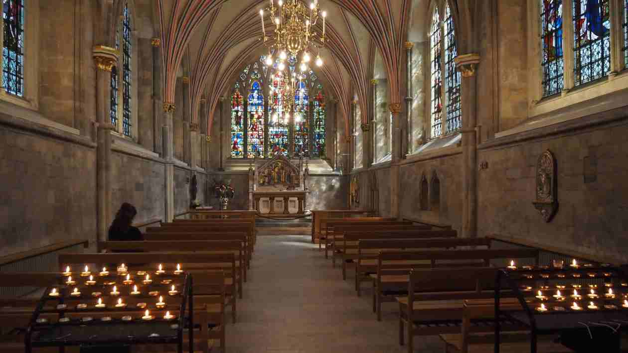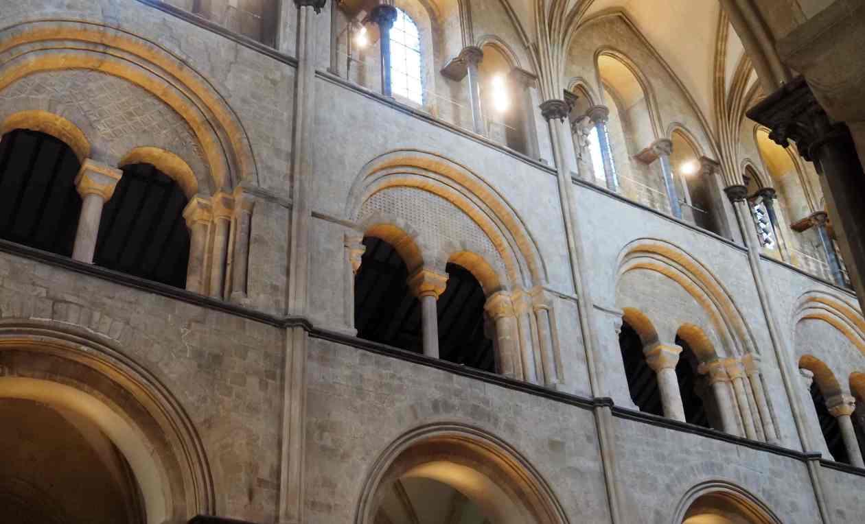 Die 995 Jahre alte Kathedrale, vor der der Heilige Richard, der die Normannen christianisiert hat, als überlebensgroßes Denkmal steht, hat eine bemerkenswerte Länge. An das Hauptschiff reiht sich der Chor an, darüber an der Schnittstelle zum Hauptschiff der im 19.Jahrhundert eingestürzte und wieder aufgebaute Vierungsturm und anschießend noch die Marienkapelle. Am Hochaltar zwischen Chor und Marienkapelle finden sich ein Wandteppich – auf der Vorderseite von John Piper, auf der Rückseite von der deutschen Künstlerin Ursula Benker-Schirmer. Und der Höhepunkt war für mich ein originales Glasfenster über den 115.Psalm von Marc Chagall.