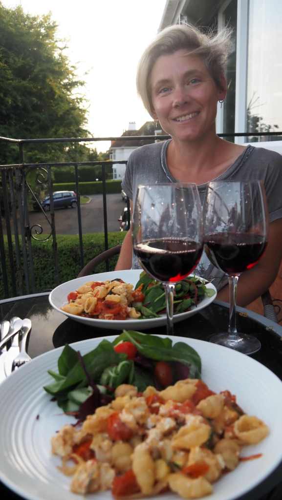 Weiter ging es Süd ostwärts im Zick-Zack über Nebenstraßen nach Worthing, wo ich abends erst einmal am falschen Haus klingelte, weil ungerade und gerade Hausnummern auf verschiedenen Straßenseiten und verschiedenen Höhen lagen (hätte ich doch von zuhause kennen können!). Also wieder ein Stück zurück bis zum Haus meiner Gastgeberin, mit Eingang an der Giebelseite – nicht vorn, da wohnen andere. Claire folgte ich schon auf Facebook, denn als ich sie bei warmshowers.org entdeckte, fiel mir auf, dass ich ihren Namen kannte, und ja- sie war dieselbe – eine blonde, sportliche Zahntechnikerin. Sie kümmerte sich auch gleich mit um meinen abgebrochenen Taschenhalter und wir feilten einen überflüssigen Grat ab, erneuerten die Klebung und sie schenkte mir noch ein paar dicke Kabelbinder (die ich dann nie gebraucht habe). Abendessen auf dem Balkon mit Rotwein mit angeregten Gesprächen. Sie bewunderte mich vor allem wegen meines vielen Gepäcks…