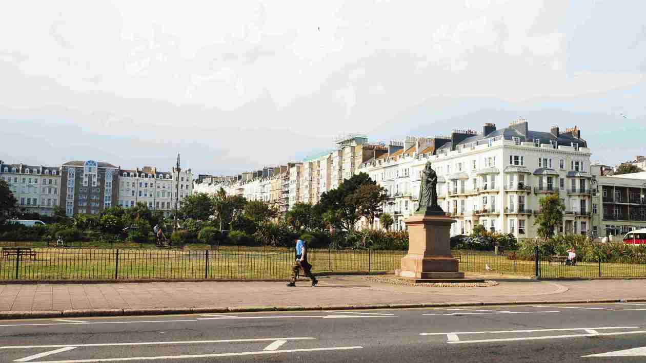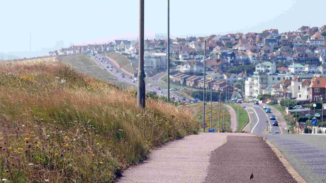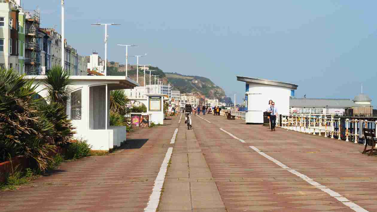 Am nächsten Tag zwangen mich steile Anstiege bei Sommerhitze und Gegenwind vor Eastbourne zum Schieben. Auf der A-Road herrschte ein gnadenloser Verkehr, natürlich teilweise ohne Radweg oder Seitenstreifen. Parallele Alternativen gab es keine. Ich nahm es mit Sarkasmus hin und dachte mir, dass „Eng“land bestimmt so heißt, weil alles so „eng“ ist. Unterwegs lockte eine Ausstellung zum Stoppen, gleichwohl begnügte ich mich mit einem Milchkaffee. Ich hatte gerade keinen Nerv dafür. Einkaufen in Eastbourne, aber bald folgte nach dem eher unbedeutenden Bexhill-on-Sea das historisch berühmte Hastings (Schlacht bei Hastings 1066, als Wilhelm der Eroberer als Anführer der Normannen die Angelsachsen besiegte), mit einer einladenden Strandpromenade und repräsentativen Gebäuden.