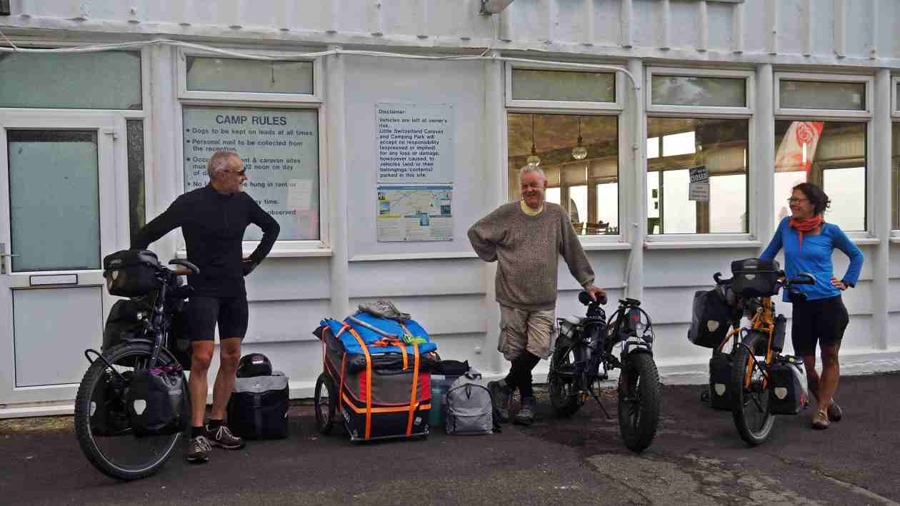 Aber es gab später und auch am anderen Morgen einen phantastischen Blick übers Meer und die berühmten Kreidefelsen von Dover. Zwei später angekommene Campingmobile mit dem BA-CH Kennzeichen erregten meine Aufmerksamkeit am nächsten Morgen, Bach? Sind das Musiker? Und siehe da, zwei Orchestermusiler aus Bamberg hatten sich mit ihren Familien die Autos geliehen, wobei das mit dem Kennzeichen wohl eher ein lustiger Zufall war. Ich summte die Melodie B-A-C-H und machte dadurch auf mich aufmerksam und so entspann sich eine nette Unterhaltung, in der ich von Voces8 und der Summer-school erzählte. Dann traf ich noch andere Radler: Ein verrückter Typ hatte sich über einen Versandhandel ein monströses E-Bike gekauft, das er gerade wieder zum Teil demontierte, denn er hatte Sorge, dass er damit die kommenden Steigungen nicht schaffen würde und sich ein Taxi bestellt. Und ein anderes deutsches Radlerpaar, die aber von Dover kamen und Richtung Irland wollten. Ich hatte ja genug Zeit an diesem Morgen für ausführlichen Erfahrungsaustausch.