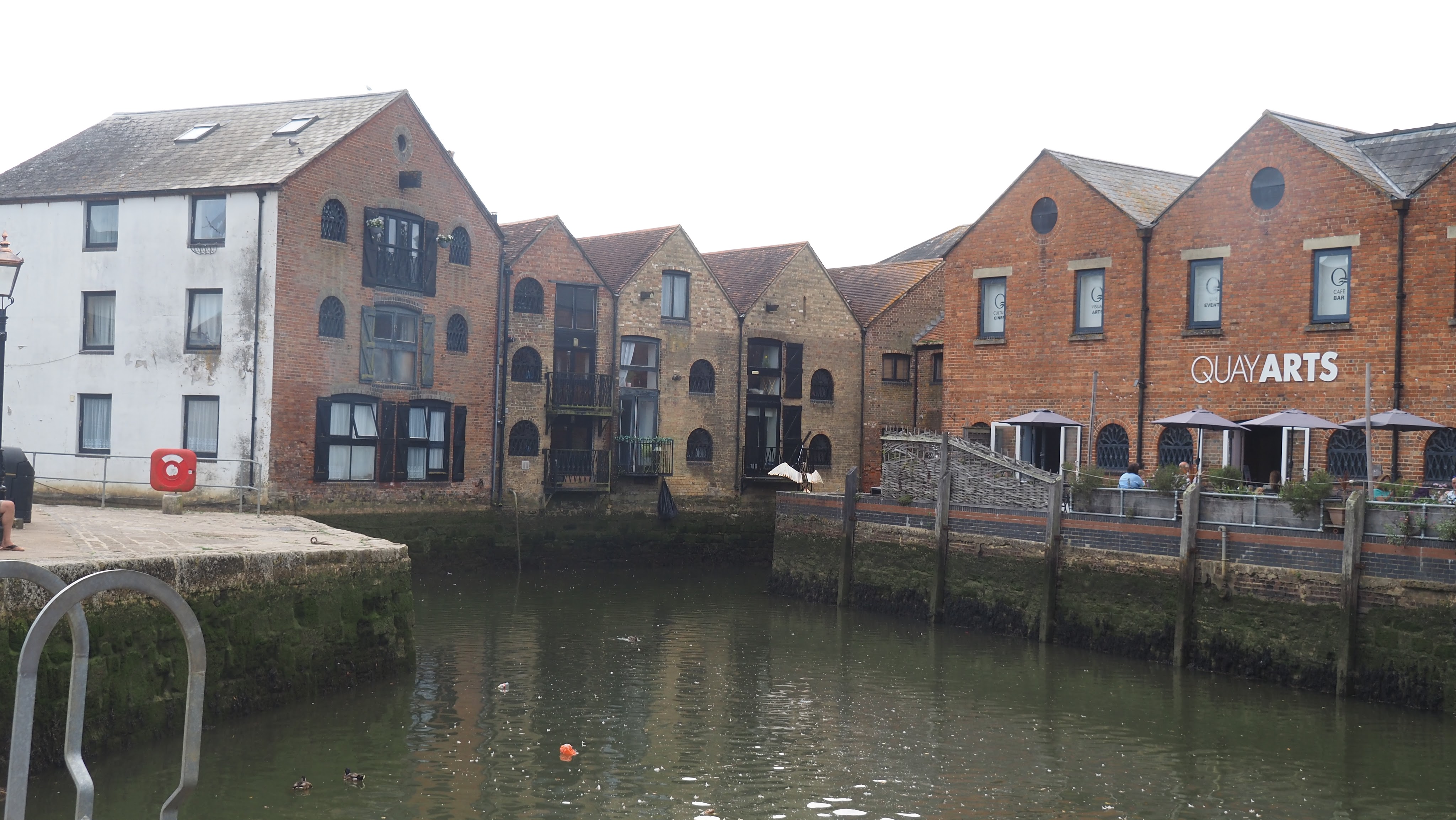 Kaum startete ich bei strahlendem Wetter am nächsten Morgen, musste ich nach wenigen hundert Metern wieder stoppen, denn mein Nabenschaltung drehte durch. (Mein Rad ist mit einer SRAM Dual Drive 27 ausgestattet, also eine kombinierte Naben-/Kettenschaltung). Also zurück, um auf einer Wiese der Abbey das Rad auf den Kopf zu stellen und nach der Ursache zu suchen. Die Nabe, fast unbenutzt, hatte ich ca. 4 Jahre zuvor bei Ebay ersteigert, weil SRAM die Produktion eingestellt hatte und weil meine bisherige nach 6 Jahren langsam Alterserscheinungen zeigte, habe ich die ‚neue‘ in ein neues Hinterrad einspeichen lassen. So lange hatte seitdem in einem Regal gelegen. Ob es an der Fettung liegt, die vielleicht eingetrocknet ist, überlegte ich, nachdem meine Untersuchung erfolglos blieb. Ich wusste es nicht und hätte erst einmal auch kein Mittel dagegen gehabt. Aber irgendwie besann die Schaltung sich und ich durfte erst einmal weiterfahren. Ich versorgte mich im nächsten Dorfladen – Läden haben auch sonntags auf, mit ein paar Lebensmitteln. Da ich für die erste Etappe zur Abwechslung bis Poole eine andere Strecke geplant hatte als hinwärts, landete ich leider bald für ein längeres Stück wieder auf einer A-Straße, diesmal der A 35. Hier herrschte ein höllischer Verkehr wie auf einer deutschen Autobahn, mit dem Unterschied, dass bei uns dann Radfahren verboten ist, hier aber nicht. Und es gibt nicht nur keinen Seitenstreifen, sondern die Straße ist auch noch viel zu eng für den Verkehr. Nicht einmal Bundesstraßenbreite! Prompt wurde ich immer mal wieder angehupt. „Weg da!“ Irgendwann landete ich vor einer Zugbrücke in Poole, an der sowieso alle warten mussten. Mein erstes Ziel war, einen Computer bzw. Smartphone-Laden zu finden, denn in der Milton Abbey kam es bei meinem Tablet immer wieder zu Abstürzen, und auch Reparaturprogramme führten zu keiner Lösung. Der Händler, den ich dann fand, meinte, das läge am Display und er könne mir da leider nicht helfen. Er könne mir nur ein anderes Gerät empfehlen. Ohne Tablet komme ich aber nicht an mein Bankkonto und an andere wichtige Programme, also schien mir nichts anderes übrig zu bleiben als ein neues Tablet zu kaufen. Ich sah ein 8 Zoll Samsung Tablet für 100 Pfund und kaufte es notgedrungen. Ich aktivierte es aber noch nicht und fuhr, nachdem ich endlich in einem Café etwas essen konnte, weiter. Plötzlich funktionierte das alte Tablet wieder. Und das blieb auch so. Wahrscheinlich hatte es einen Schreck bekommen…