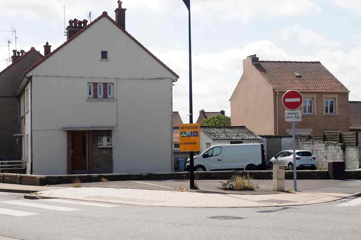 Jetzt wollte ich meiner mit ‚komoot‘ geplanten Route nach Dünkirchen folgen und landete in einer Sackgasse, denn wegen einer riesigen Hafenerweiterungsbaustelle gab es Umleitungen, die nicht ausgeschildert waren und auch Google Maps zeigte mich mitten in einem Feld stehend, während ich mich auf einer gut ausgebauten Straße in einem Gewerbegebiet befand – „Durchfahrt eingeschränkt“ ! Also noch mal zurück, aber die D 11, auf der ich dann landete, führt nicht Richtung Dünkirchen, sondern in Nord-Süd-Richtung. Kehrtwendung, es MUSSTE da irgendwie lang gehen! Ich folgte dann wieder der alten komoot-Weisung in der Hoffnung, dass ich da irgendwie durchkomme, aber die Straße endete vor einem Damm, der mal eine Straße werden soll… Zurück! Ich stoppte ein Auto, aber der Fahrer konnte mir nicht helfen. Weiter. Wieder stoppte ich ein Auto, aber auch dieser Fahrer wusste nicht, wohin diese neue Straße, auf der wir uns beide befanden und die durch das Gewerbegebiet ging, führte. Vermutlich arbeiten die alle hier und fahren immer nur bis zu ihrem Arbeitsplatz… Der dritte Autofahrer schließlich wusste es auch nicht, aber immerhin vermutete er, dass ich da tatsächlich durchkommen würde und so fuhr ich alle Schilder ignorierend einfach weiter – nach einer Kurve landete ich an einer Straße mit dem plötzlich auftauchenden Hinweis „Umleitung Radroute“ Richtung Bourbourg, und ab da weiter Richtung Dünkirchen … Ausatmen!