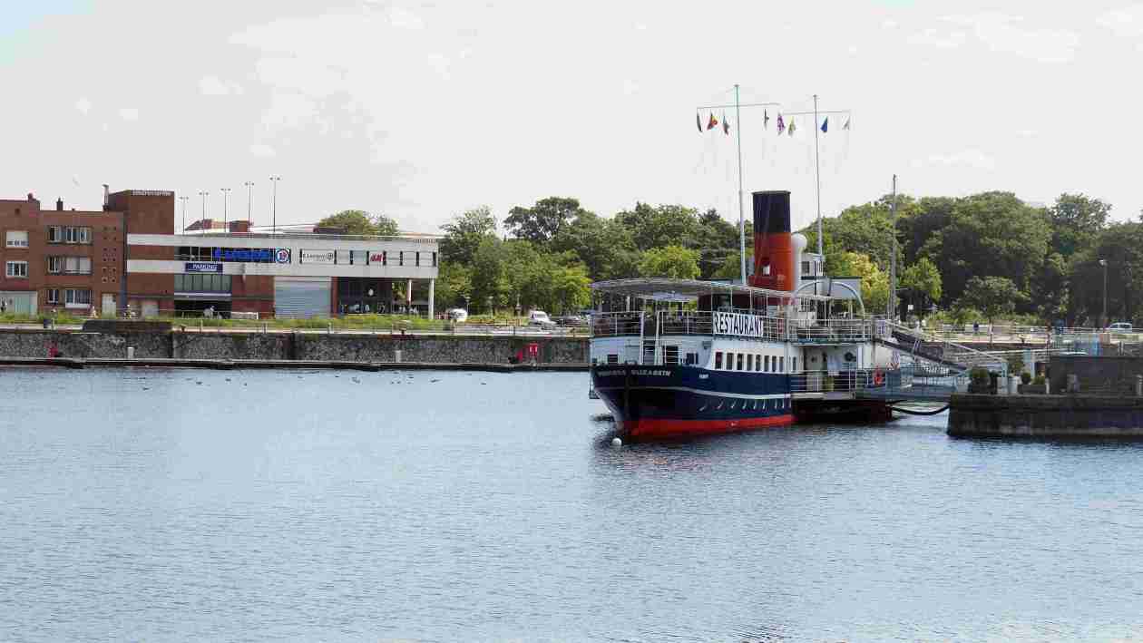 Mit dem TER kam ich pünktlich 14.40 Uhr in Cherbourg an. Drei Stunden Zeit bis zum Einchecken in die Fähre nach Poole, die dort nur einmal täglich ablegt. Ein wenig Stadtbesichtigung, auch die gotische Kirche war sehenswert. Ich bewunderte die womöglich nördlichste Freiluftpalme mitten auf einer Kreuzung. Essen gehen in einem Restaurant am innerstädtischen Hafenbecken – dann in einer langen Schleife zur Fähre.