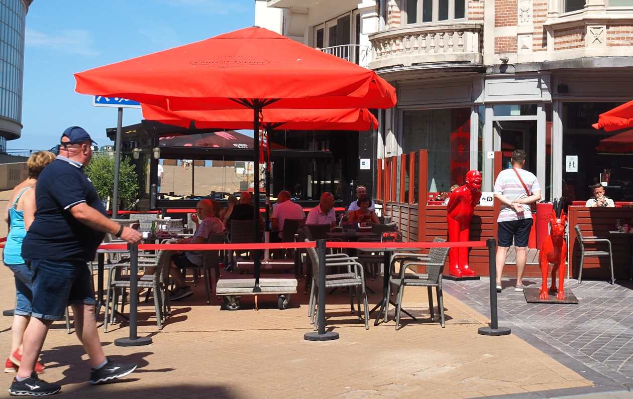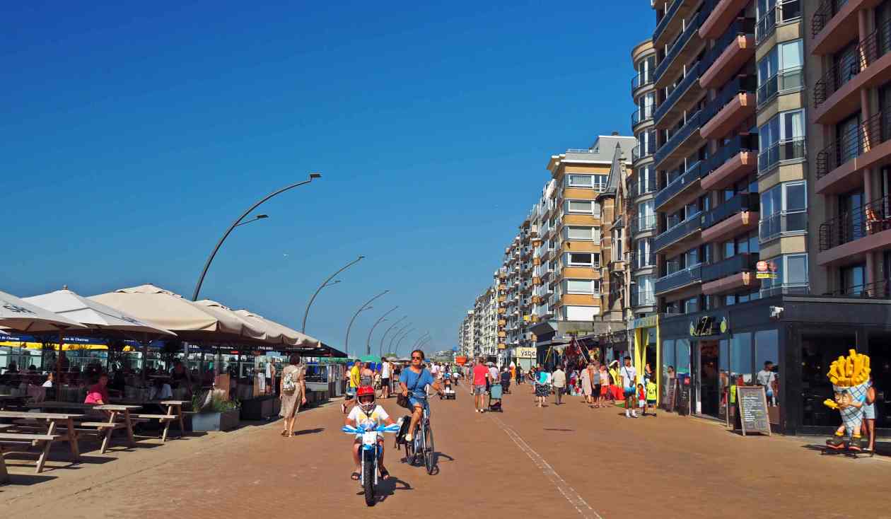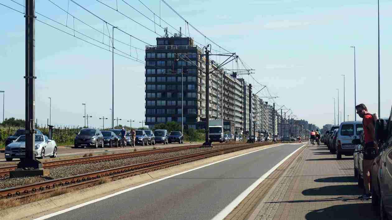 Erst einmal Kaffee trinken. Dann los. Ich wollte an der Küste entlangfahren. Als erstes kam De Panne. Ein Ort, von dem ich bisher noch nie gehört hatte entpuppte sich als ein Städtchen mit großstädtischer Architektur bis zum Strand hin und weiter an der von Menschen überfüllten Strandpromenade entlang. Es wirkte auf mich als würde ganz Belgien im August an die eigene Küste ziehen… Ebenfalls parallel zur Küste führt bestimmt eine der längsten Straßenbahnlinien der Welt über 67 km bis Knokke-Heist kurz vor den Niederlanden. Also erst einmal mutig durch die Massen an der Küste entlang und ich fotografierte, was sich an Motiven bot.