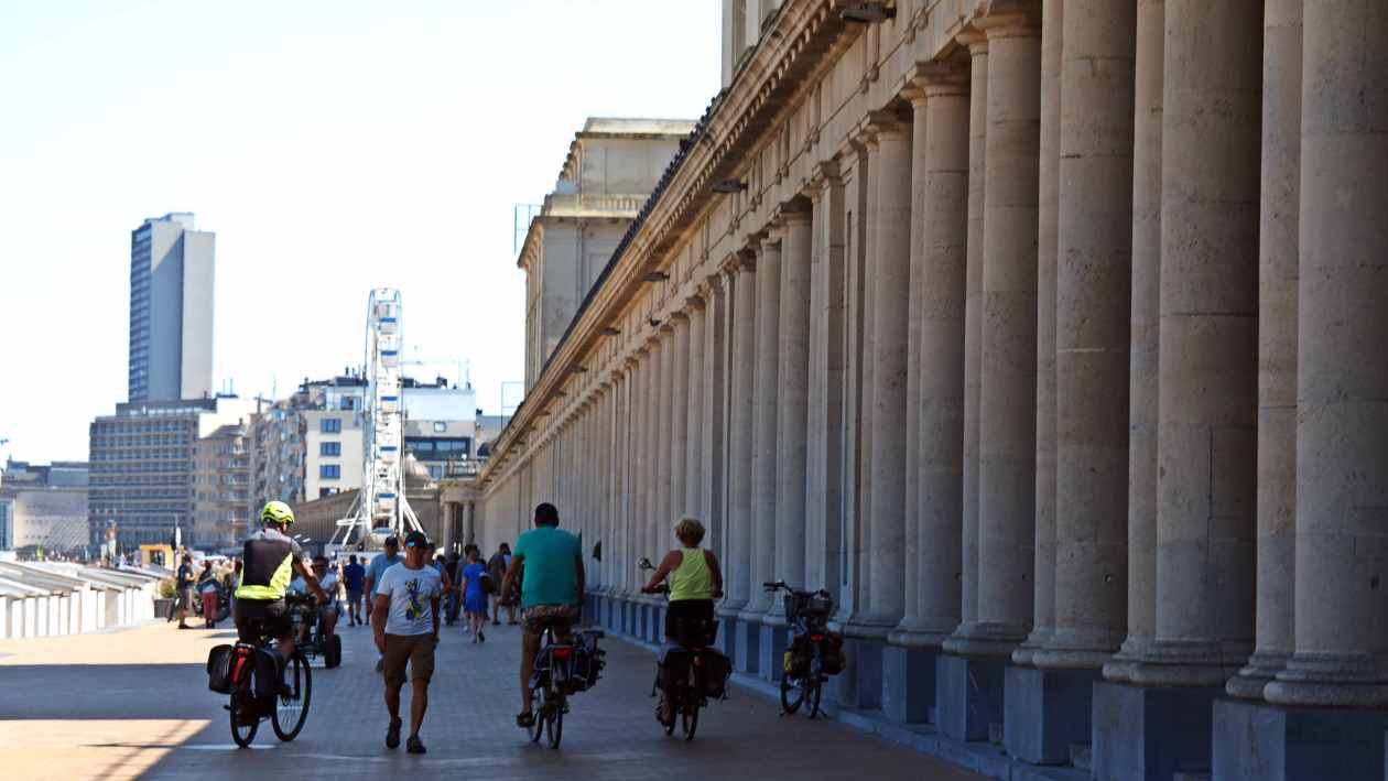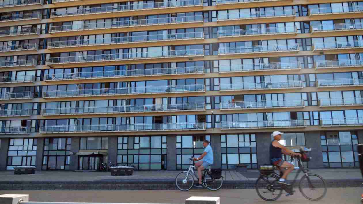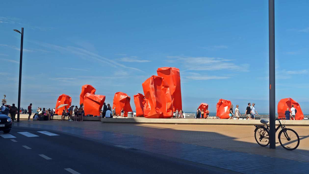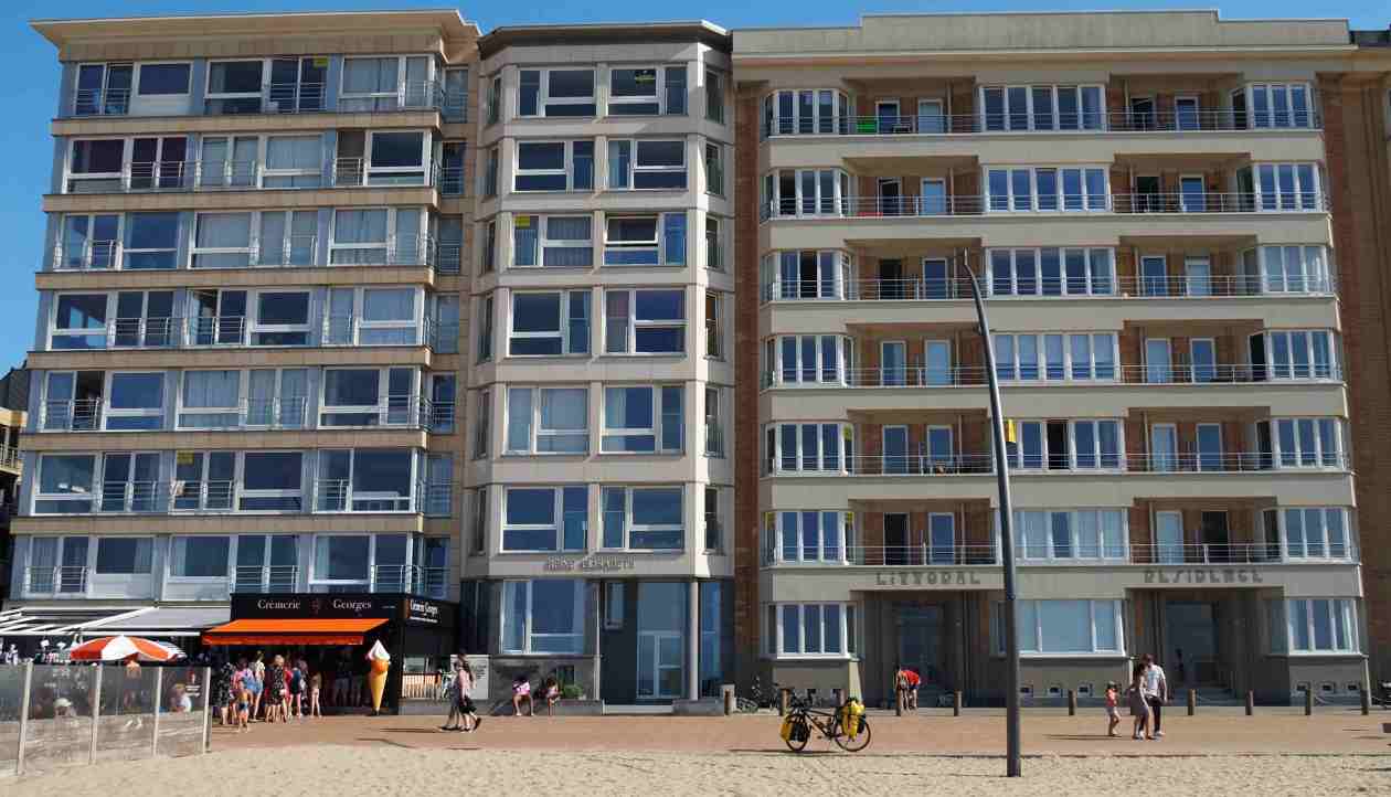 Einkaufen war fällig und in Westende-Bad fand ich einen kleinen Supermarkt, in dem sich ein Kundentraube vor den Brötchenbehältern sammelte. Die Preise waren beeindruckend hoch – wie in den USA! Urlaubergerecht? Aber Jetzt ging es wieder zur Küste und hinter Middelkerke wieder auf den Deich am Strand in eine völlig zubetonierte, jeder Natürlichkeit beraubt Landschaft von beeindruckender Hässlichkeit. Strand-Beton-Deich-Straßenbahn-Straße. Ein paar Westwall-Reste aus WWII. Eine Bunker zu Wohnzwecken umfunktioniert. Kilometerweite Öde. Am Ende – Oostende. Und wieder eine Strandpromenade wie in De Panne mit Appartement-Blöcken, nur noch mächtiger.