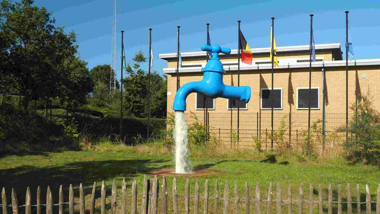 Hinter Koksijde hatte ich dann genug von dem Gewühle und bog landeinwärts über herrliche Radrouten ab, vorbei an einem riesigen scheinbar schwebenden Wasserhahn, aus dem eine wahre Flut strömte, kreuz und quer immer Richtung Nieuwpoort, das ich umfuhr, um dann einen Campingplatz in Westende anzusteuern.