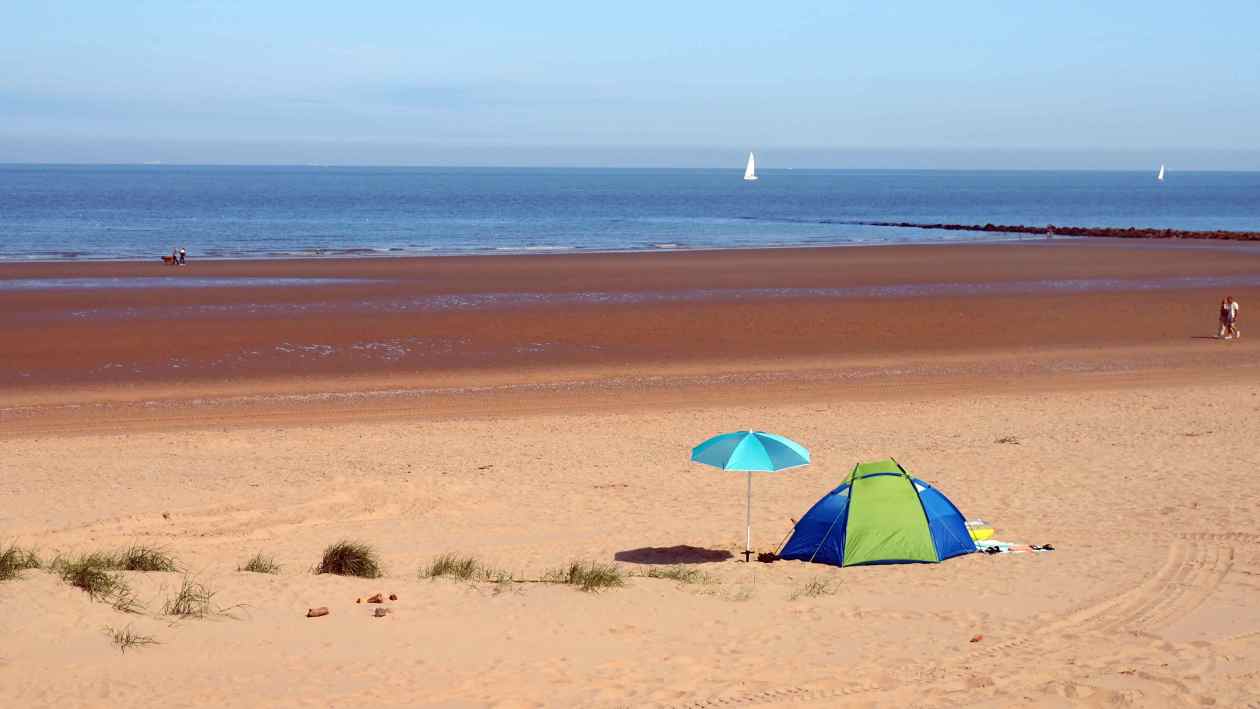Mein Ziel an diesem Tag war ja der Strandcamping Groede. Zwischen Büschen auf einer kleinen Zeltwiese schlug ich dort mein Zelt auf, dann machte ich einen kleinen Ausflug zum Meeresstrand um endlich mal wieder Schwimmen zu gehen, dachte ich, und wie üblich, in solchen Fällen ist Ebbe und irgendwo weit weg winkt das Meer! Zurück, schnell noch ein Bier als letzter Gast in einem Gartenlokal. Gute Nacht!