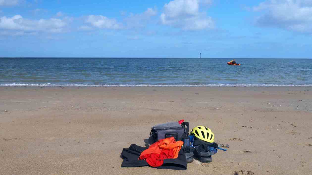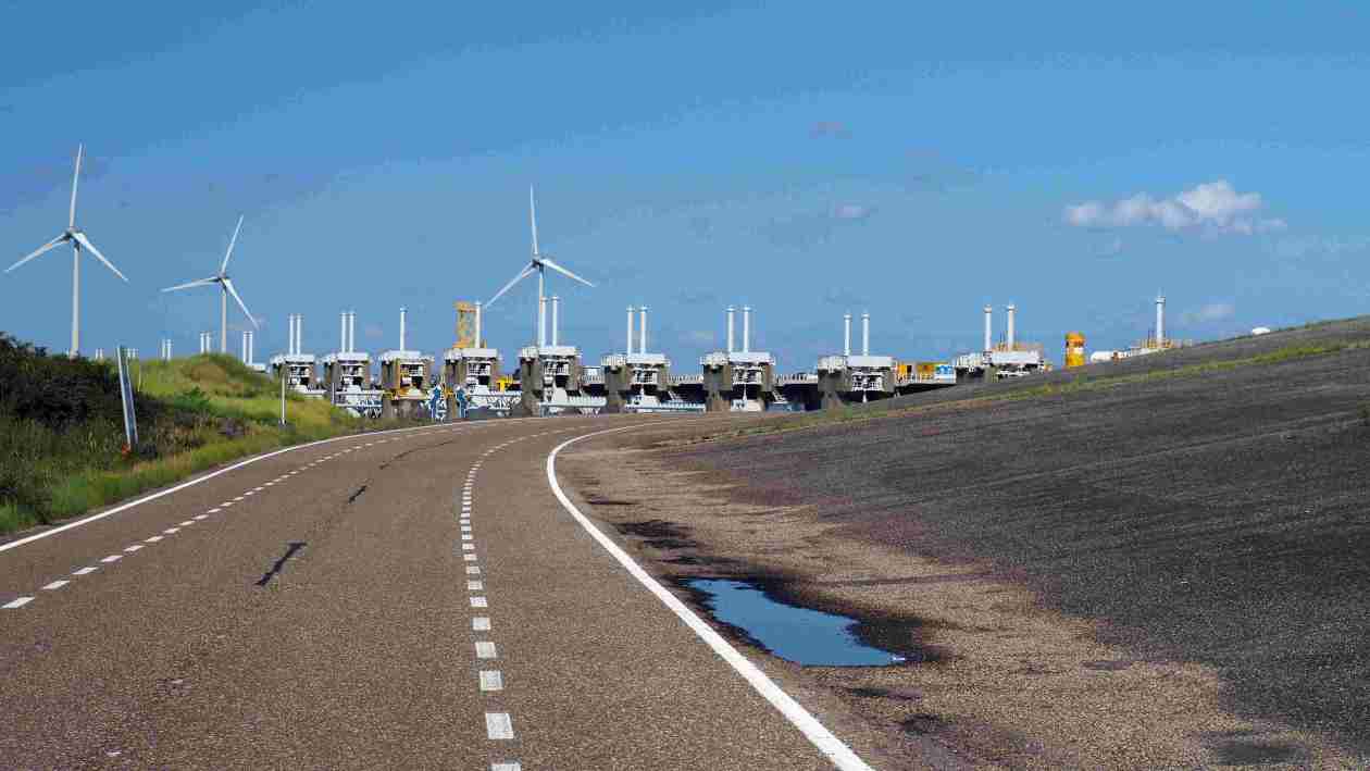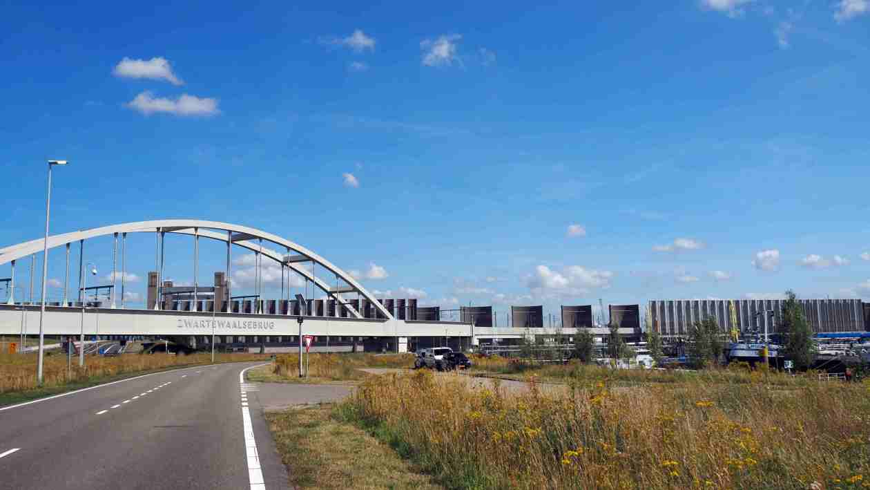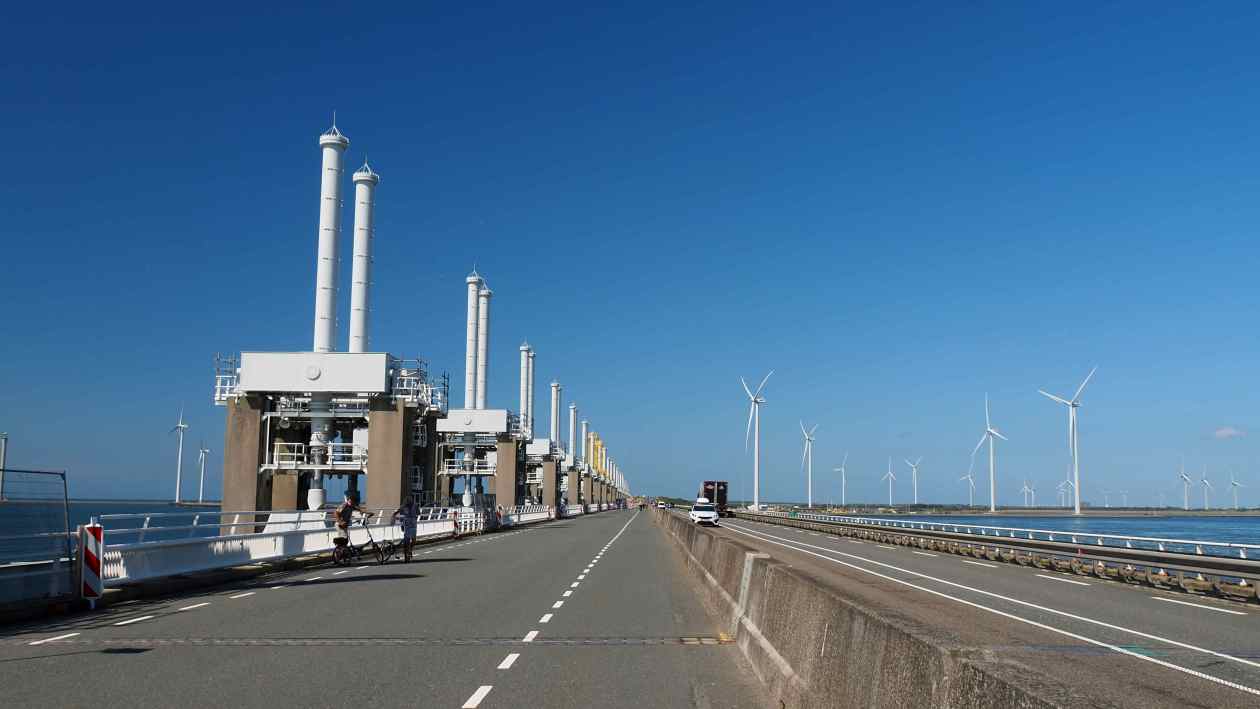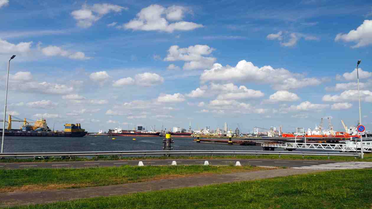 Und dann – plötzlich riesige Dämme und Stauwerke mit viel Beton, über das Veerse Meer, die Oosterschelde-Sturmbarriere, dann endlich an einer Bucht – Schwimmen! Das zweite Mal erst auf dieser Reise. Keine Ebbe und ein ruhiges Stück Nordsee! Jetzt noch der Damm über das Deltageul, und schließlich der Hartelkanal, der äußerste Arm an dem das Hafengelände von Rotterdam beginnt.
