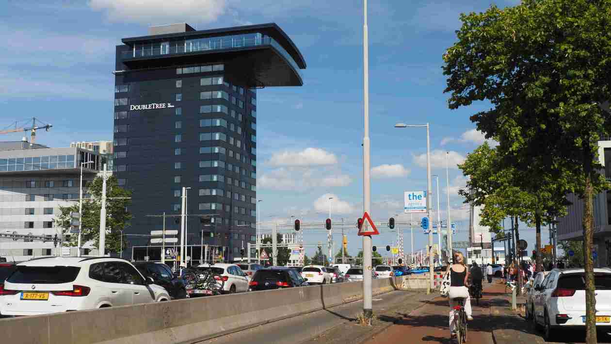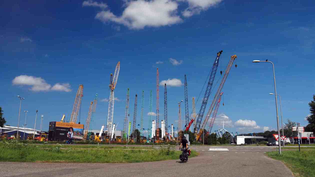 Nach Rotterdam rechts abbiegen. Riesige senkrechte rätselhafte Betonschalen – Windblockaden? Und dann — diese endlose Industrieanlage – Raffinerien hauptsächlich – eine nach der anderen. Für Radfahrer ist mit einer gesonderten Umfahrung gesorgt. Nach gefühlt unendlichen 18 km geht es endlich raus aus dieser Industriewüste am Rande des größten europäischen Hafens in die Stadt hinein.