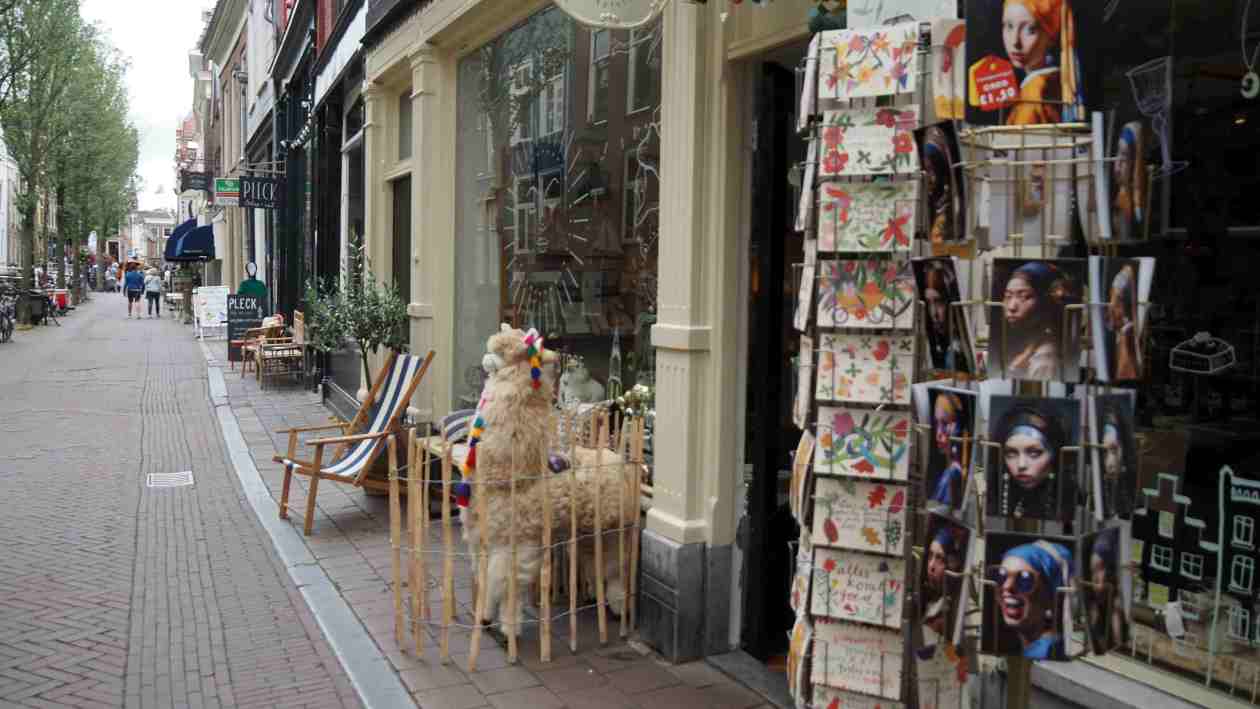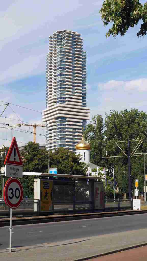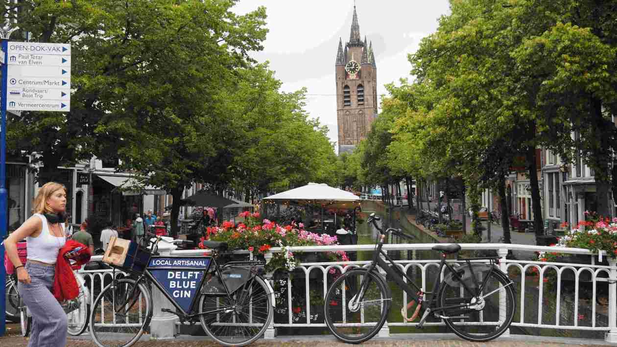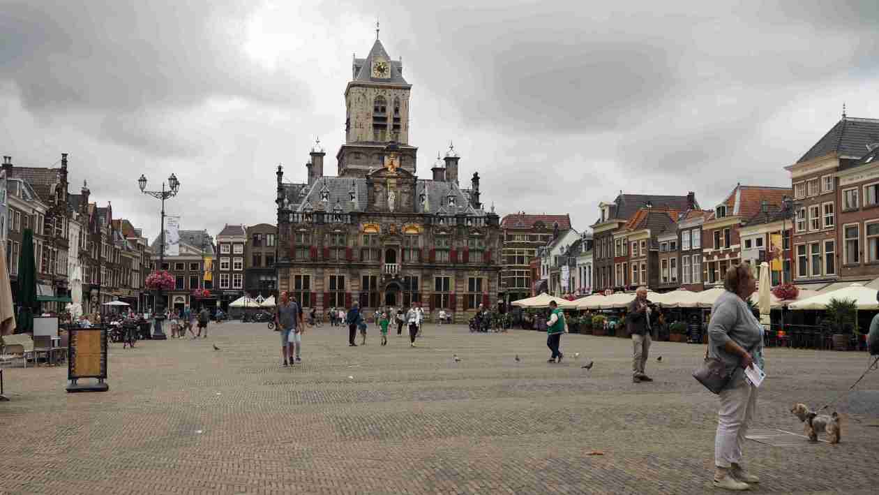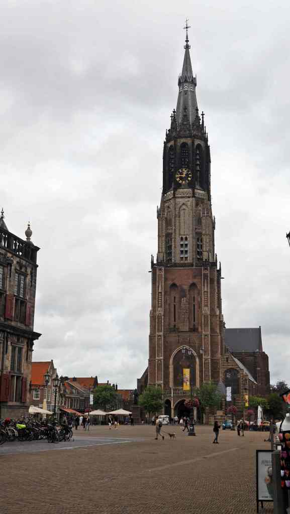 Delt folgte als nächste bedeutende Stadt auf meiner Route. Das Delfter Blau wird auffallend gewürdigt – Läden mit unbezahlbarem Porzellan, ein modernes Gebäude in dieser Farbe, ein Kunstwerk u.s.w. Die Stadt wirkt wie eine kleine Kopie von Amsterdam, mit vielen mittelalterlichen Gebäuden. Am Markt die hoch aufragenden Nieuwe Kerk, für die mir aber der Eintritt zu hoch war. Aber auch wenn das Ticket mit für die Oude Kerk gegolten hätte – das war mir doch zu teuer und ich verzichtete. Wenn ich mehr Zeit gehabt hätte, hätte ich auch das Vermeer van Delft-Museum angesehen, dieser Renaissance Maler mit den raffinierten Perspektiven ist ja neben dem berühmten Blau das wichtigste Pfund mit dem diese Stadt touristisch wuchern kann.