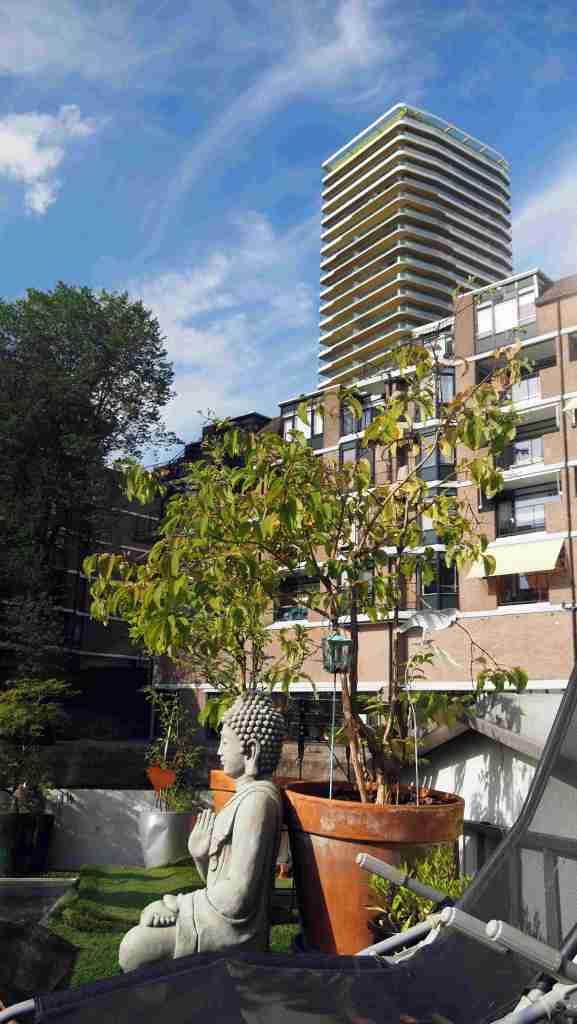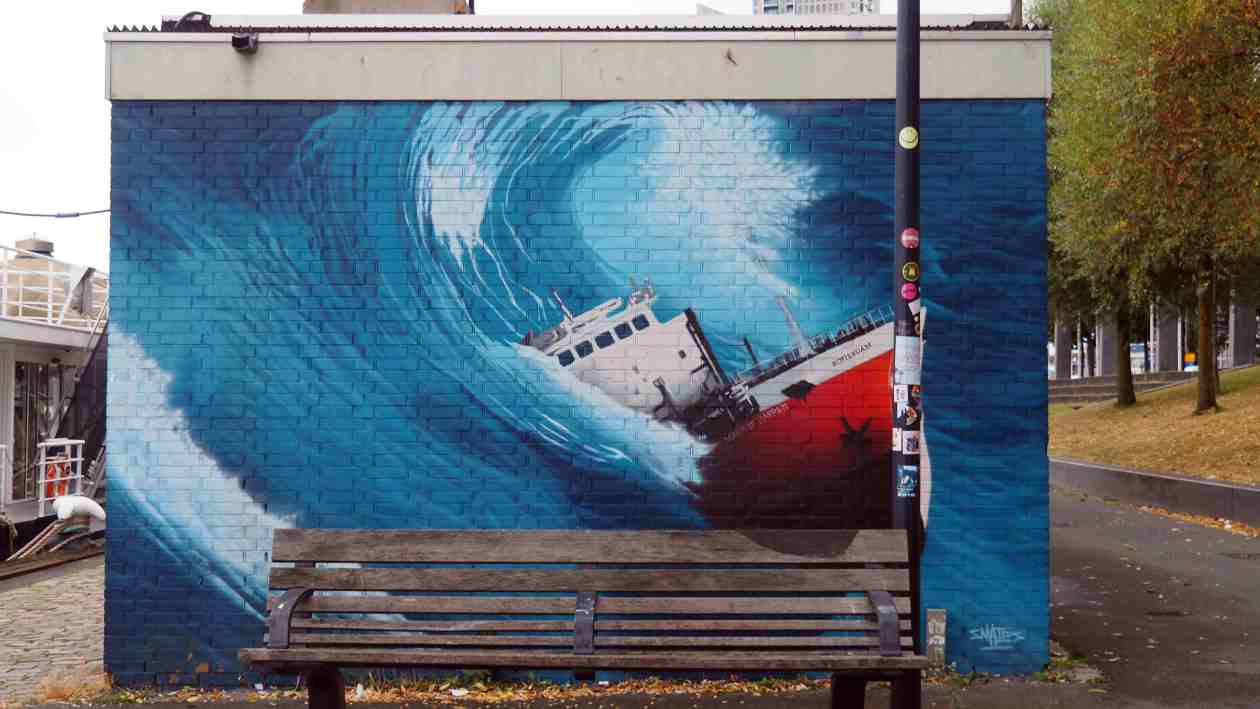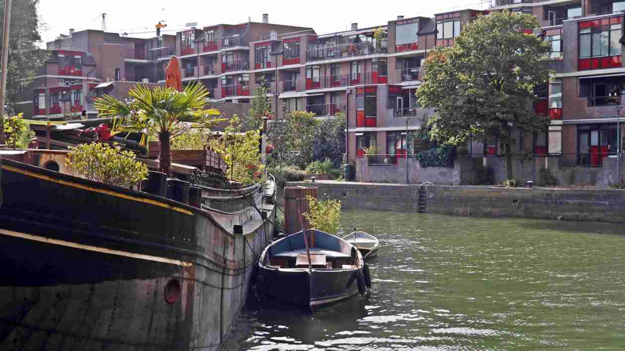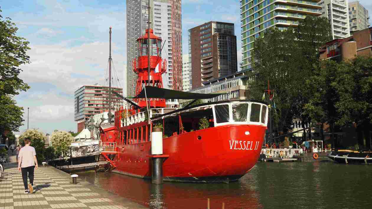 Und so landete ich, nach einem ersten Eindruck von Rotterdams moderner Architektur, am Scheepmakershaven an einem als Quartier vermieteten, mit Pflanzen bewachsenen Lastkahn und machte mich bemerkbar.