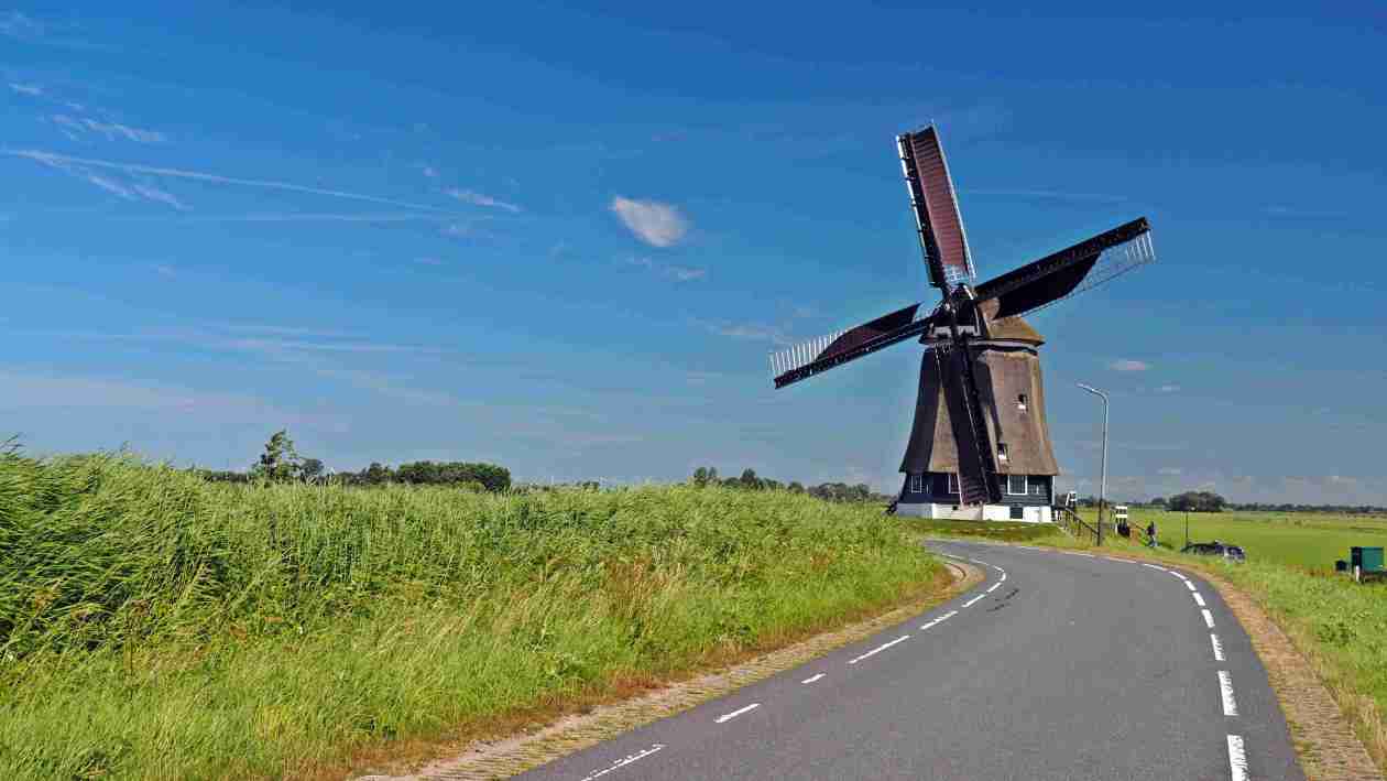 Ich hatte nicht vor, durch Amsterdam zu fahren und querte westlich der Stadt mit einer Fähre den Nordseekanal. Am einem Poldermuseum legte ich ein Kaffee- und Eispause ein, später traf ich auf eine Windmühle neben dem Damm und stoppte neugierig, Der Windmüller winkte mich heran und bot mir an, mir Windmühle von innen zu zeigen. Was für eine nette Gelegenheit! Ich lernte, dass hier kein Korn gemahlen wird, sondern diese Mühlen dazu dienen, die unterhalb des Meeresspiegels liegenden Polder permanent zu entwässern und so das Weideland zu erhalten. Ich hatte herrlichen Rückenwind an diesem Tag. Das sollte sich bald ändern.