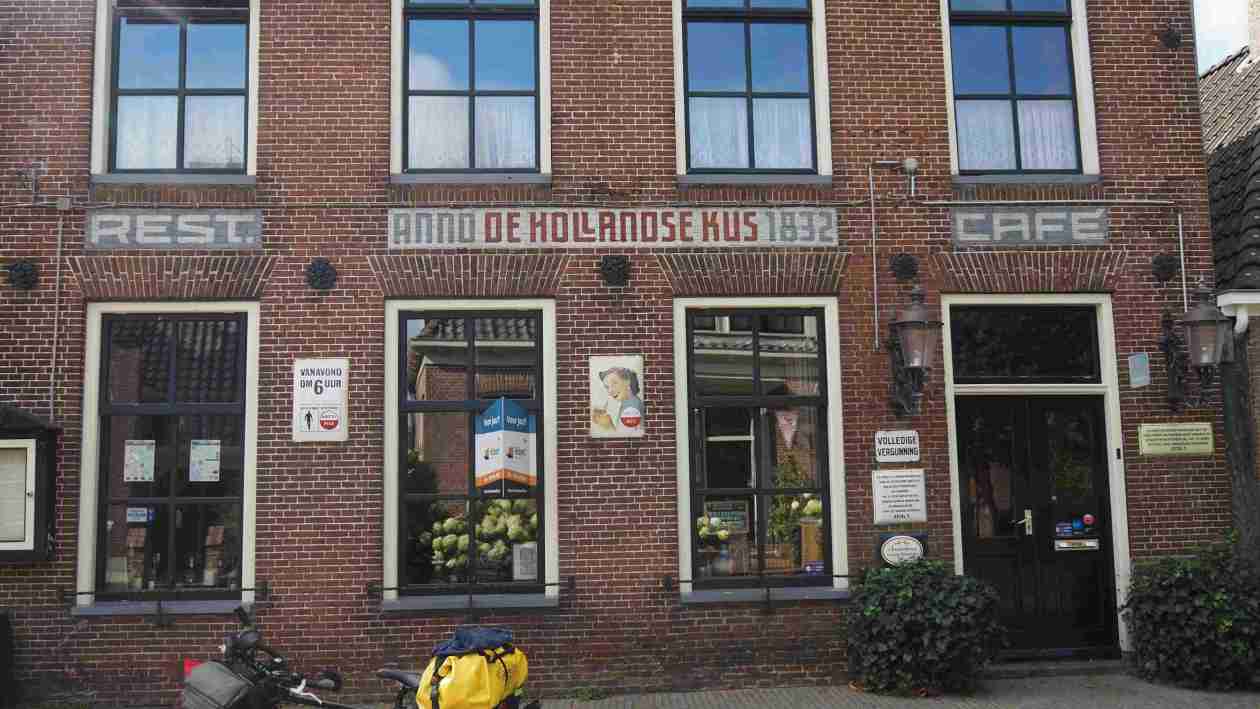 Jetzt war ich in Friesland. Westfriesland, müsste man korrekterweise sagen, um es vom deutschen Ost- und Nordfriesland zu unterscheiden. Die Architektur ländlicher Häuser unterscheidet sich zu Holland erkennbar. Pingjum war das erste Dorf mit einem historischen Brauhof, leider heute geschlossen. Ich kam an einer Raststätte für Radfahrer vorbei, ausgestattet mir einer Selbstbedienungssküche, Kaffee, Yoghurt im Kühlschrank – Vertrauenskasse. Und Toilette natürlich.