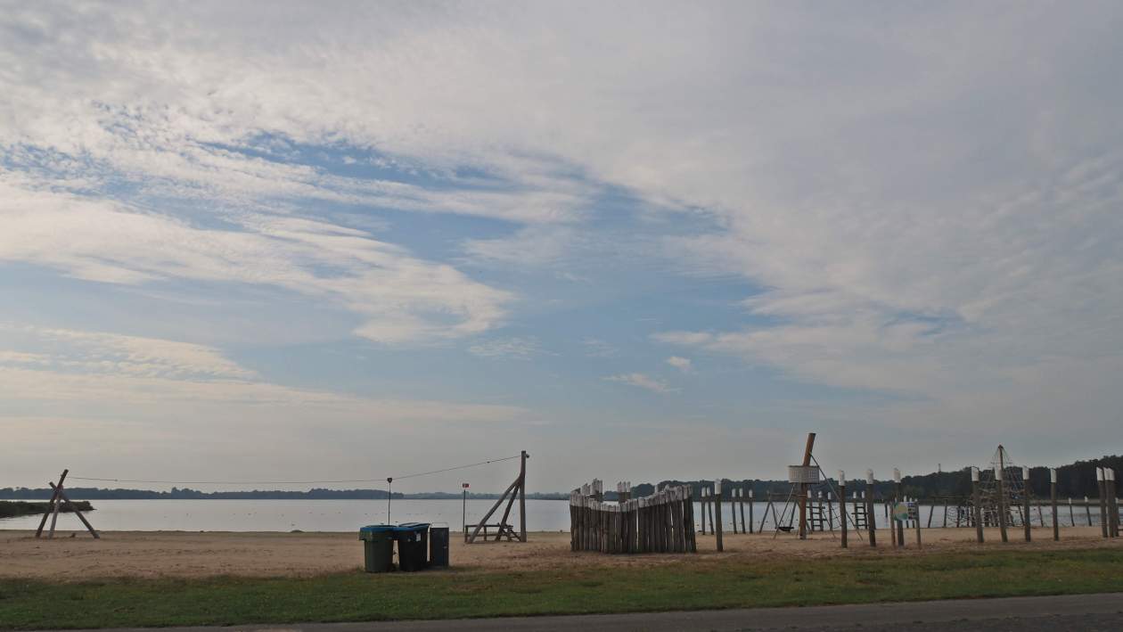 Dann, bei Leer, über die Ems auf der Jan-Berghaus-Brücke und weiter, entlang an vielen von der Ems abführenden kleineren, aber immer noch schiffbaren Kanäle entlang kam ich mir immer noch wie in den Niederlanden vor – nur gab es deutlich weniger Radfahrer. Hinter Barßel hatte ich mir einen Campingplatz vorgemerkt, den ich abends nach 73 km erreichte. Idyllisch an einem richtigen See gelegen konnte ich endlich mal wieder eine richtig lange 500 m Strecke morgens schwimmen!