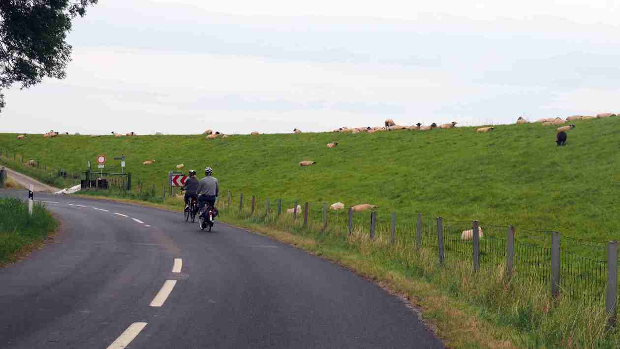 Weiter am nächsten Tag, dann oben auf dem begrünten Deich entlang zur Fähre über die Westerschelde.